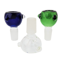 Our selection ranges from basic clear glass bowls to colored, fumed, and heady art bowls. Some feature built-in screens or pinched glass to prevent flower from pulling through. Others have handles for easy removal when the bowl is hot.