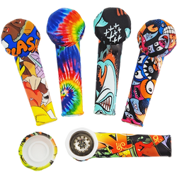 Sold out - 3.5″ Silicone Decal Hand Pipe w/ Metal Bowl & Lid