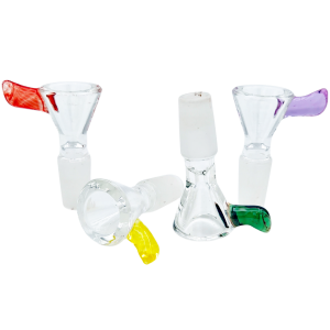 The 2″ 14MM CLEAR W/ COLOR HORN FLOWER BOWL is a compact glass slide built for flower smokers who want a simple upgrade that actually feels good in the hand. The clear body keeps things clean and classic, while the colored horn gives you something solid to grab so you’re not touching hot glass. At 2 inches (51mm) tall with a standard 14mm joint, it drops right into most daily driver bongs without any drama.