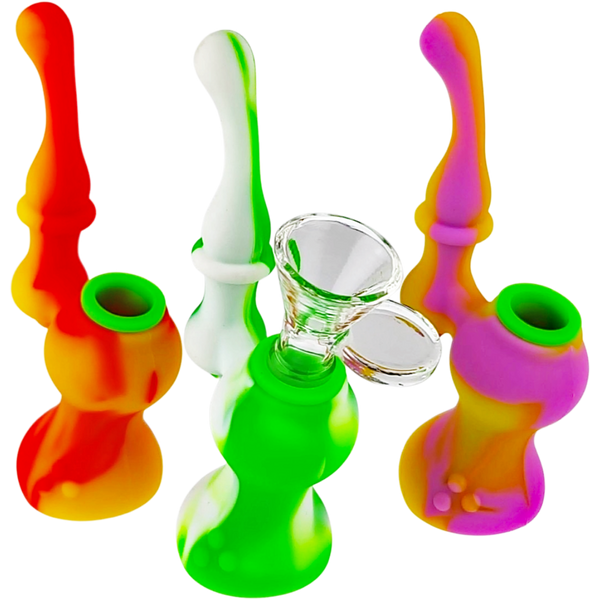 The 5-Inch Silicone Character Bubbler is a compact, unbreakable water pipe built for flower smokers who want portability without the stress of carrying glass. Silicone construction means you can toss it in a bag, drop it on concrete, or leave it at a friend's place without worrying. Comes with a glass flower bowl, stands 5 inches tall, and features a playful robot-inspired decal design that brings a little personality to your daily rotation.
