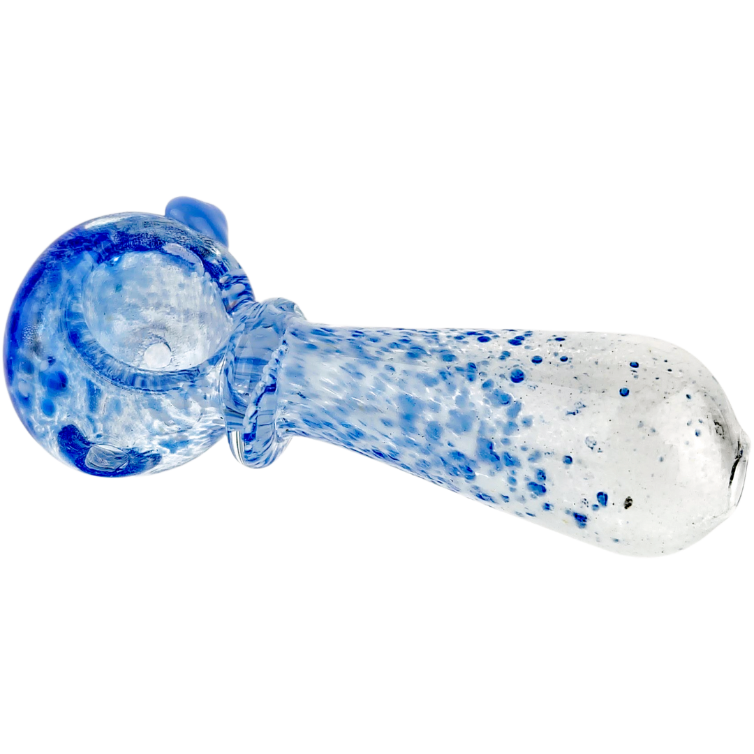 The 3.5″ Two-Tone Confetti Glass Hand Pipe works like a classic spoon: a bowl up front, mouthpiece on the opposite end, and a carb on the side. Pack the bowl with your flower, control the carb with your finger while you take your draw, then clear it when you’re ready — nothing fancy, just the standard hand-pipe workflow most smokers already know.