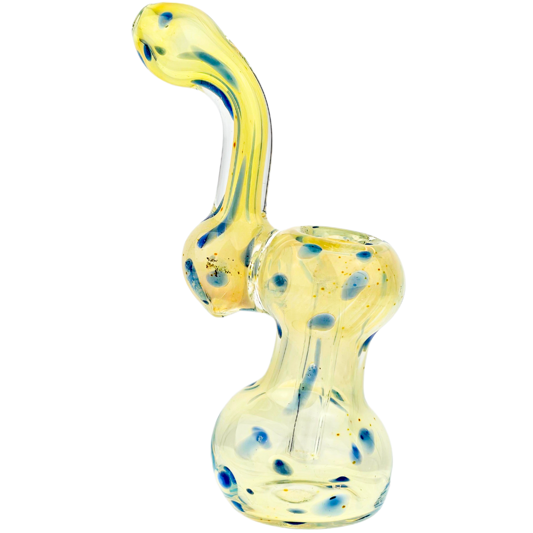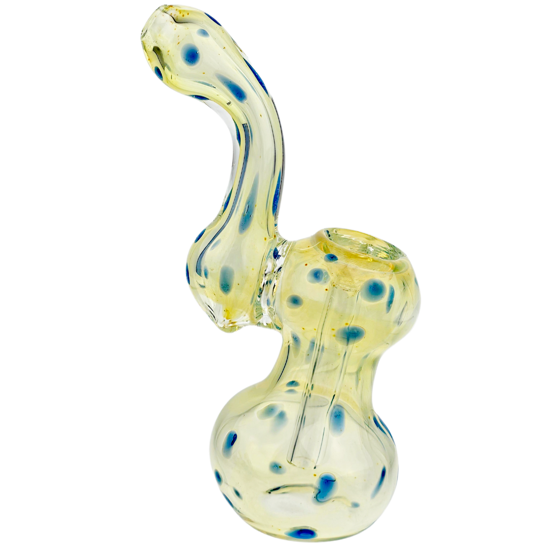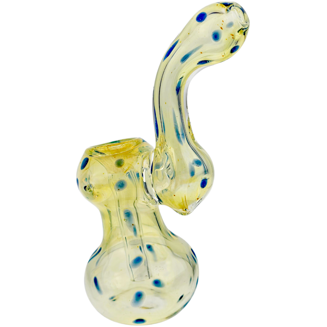 The 4.5 Inch Polka Dot Fume Bubbler is a compact glass water pipe built for flower smokers who want smooth, filtered hits without lugging around a full-size bong. At 4.5 inches tall with a stable base that stands upright on its own, this piece delivers water filtration in a palm-friendly package. The fume glass construction with polka dot detailing gives each bubbler a unique, color-shifting look that changes as you use it.