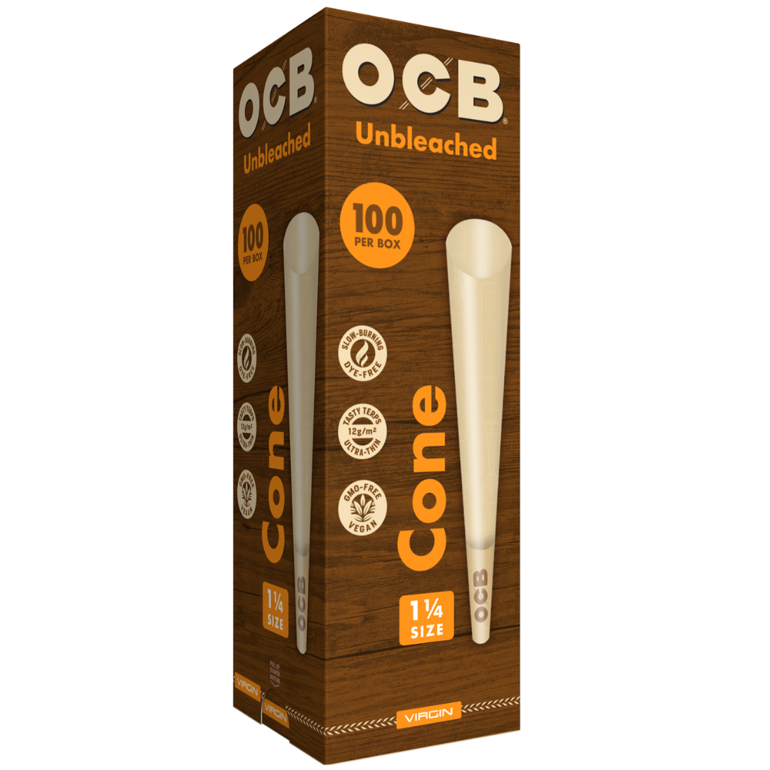 The OCB Unbleached 1 ¼ Cones 100 Count Tower is a bulk supply of pre-rolled cones designed for smokers who want natural, eco-friendly papers without the hassle of hand-rolling. Made from 100% unbleached wood fibers sourced from responsibly managed forests, these 84mm cones hold approximately 0.5g each and seal with natural acacia gum. The tower format keeps 100 cones organized and ready to grab, making this a go-to for anyone rolling multiple sessions or stocking up for the long haul.
