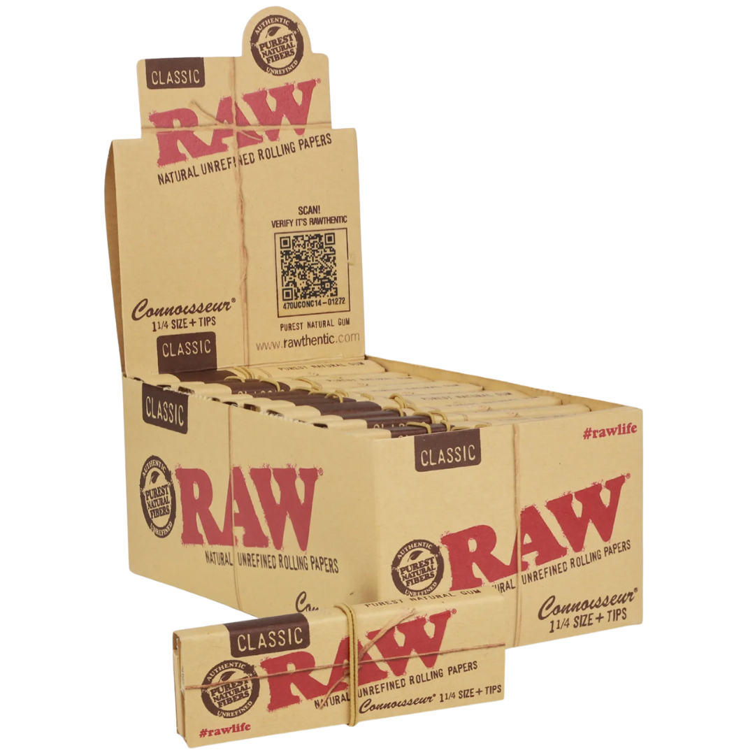RAW Classic Connoisseur 1 ¼ Rolling Papers with Tips 24bx