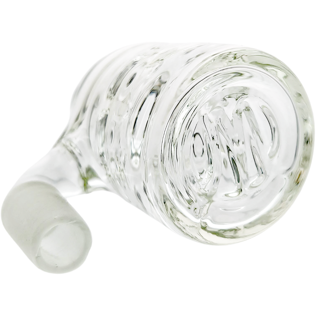 Setup is simple: your bong’s 14mm female joint holds the ash catcher, and the ash catcher holds your bowl or slide. The 90° angle is meant for traditional upright pieces, so the ash catcher hangs level off the side instead of tilting or spilling.