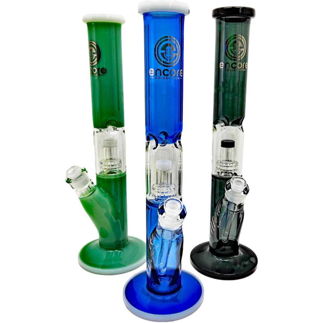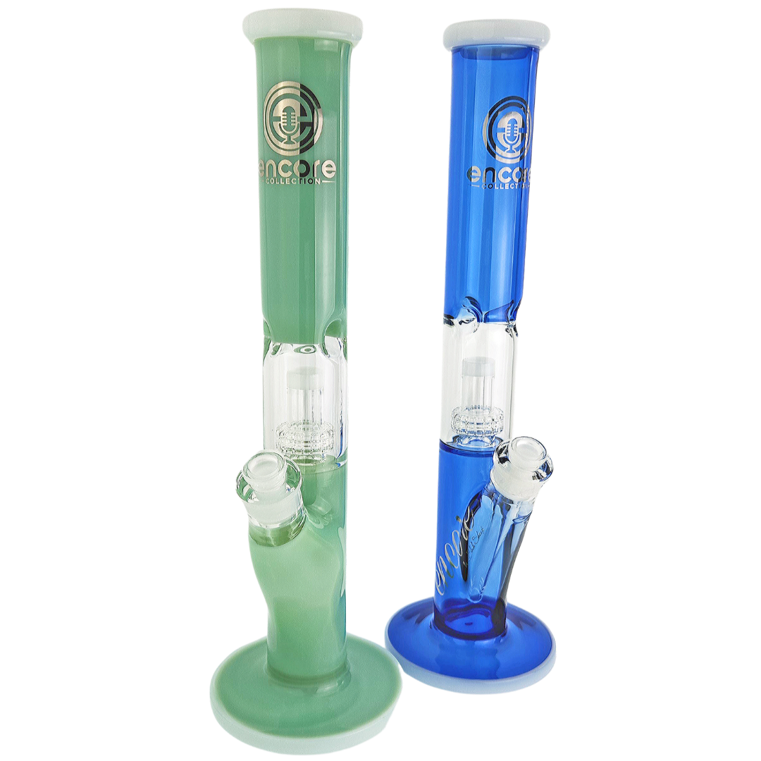 The 16” Encore Two-Tone Showerhead Window Straight Bong is a tall, glass water pipe built for smokers who want big, clean hits without sacrificing style. At 16 inches (406mm) with a 14mm joint, it’s a true daily driver for people who like long pulls, solid function, and glass that looks good on the table. The standout showerhead “window” perc does the heavy lifting, breaking up smoke for smoother, cooler rips that don’t torch your lungs.