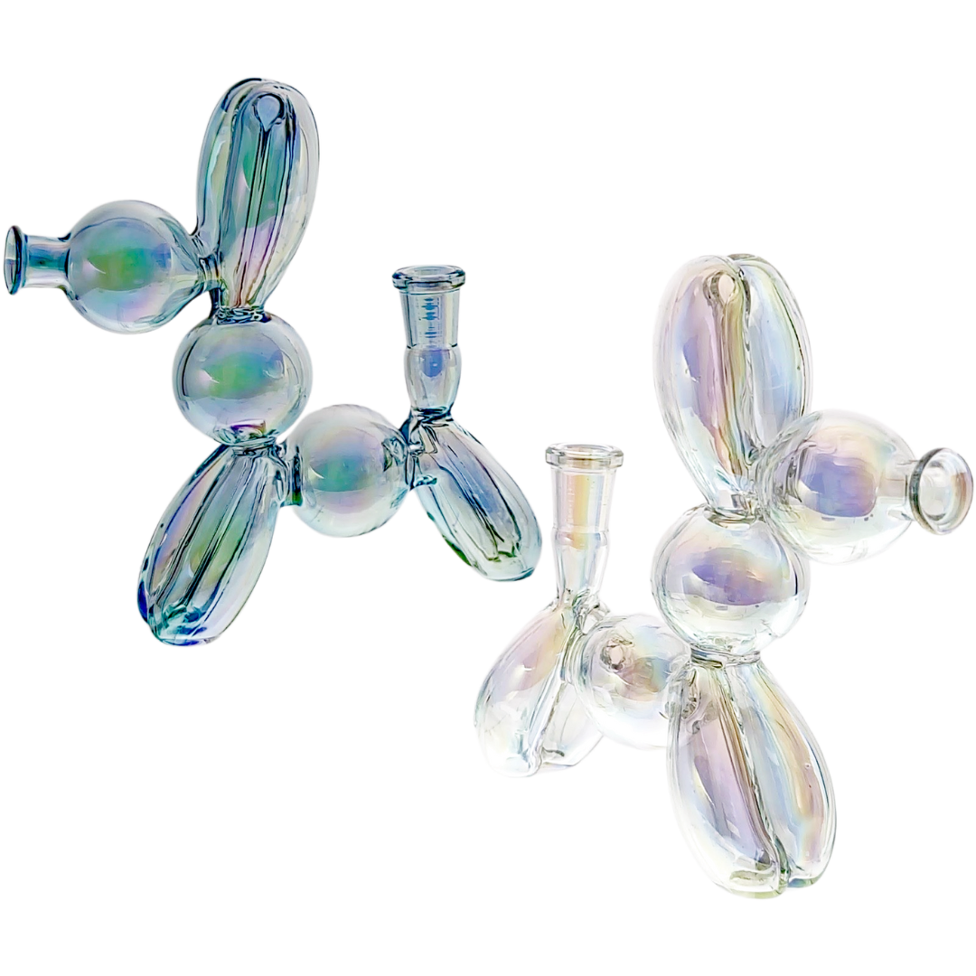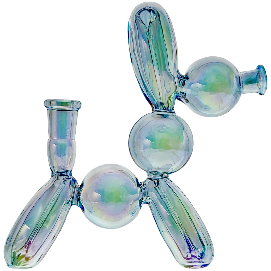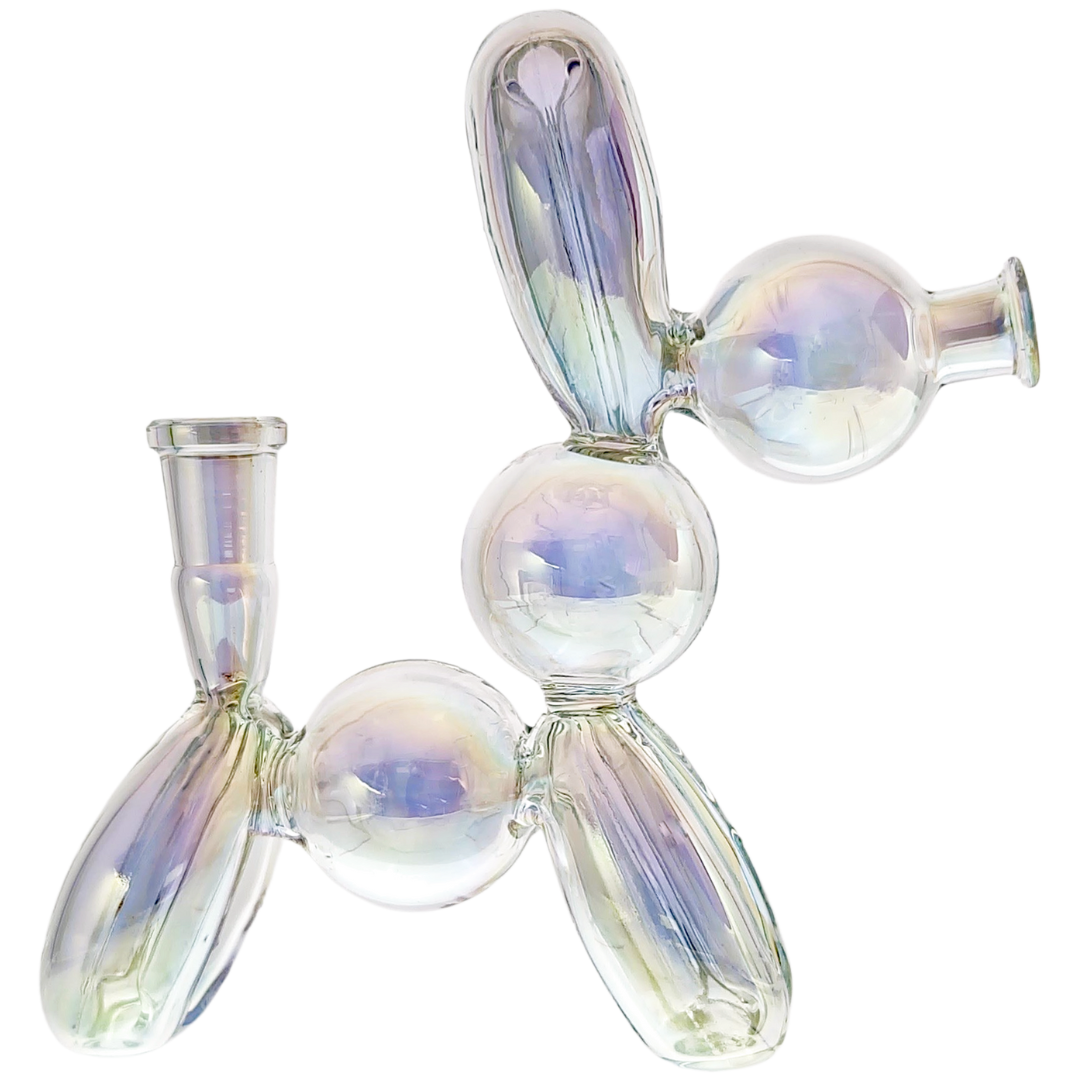 The 7-inch Iridescent Balloon Animal Rig is a sculptural glass dab rig that turns your concentrate station into a conversation piece. Built for dabbers who want personality without sacrificing function, this rig pairs playful balloon animal styling with the rainbow-shifting finish that catches light from every angle. Comes ready to use with a 14mm male 90-degree quartz banger included.