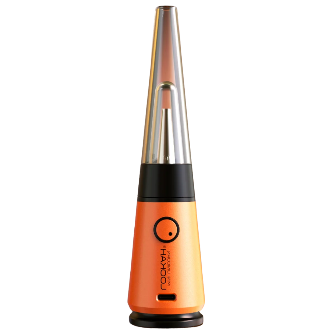 Electric dab rigs replace the traditional torch-and-banger setup with a battery-powered heating element. The Unicorn Mini uses Lookah's 710 threaded coils — quartz-wrapped heating elements that vaporize concentrates when you hold the power button. The vapor travels up through a small glass bubbler filled with water, cooling and filtering before it hits your lips.