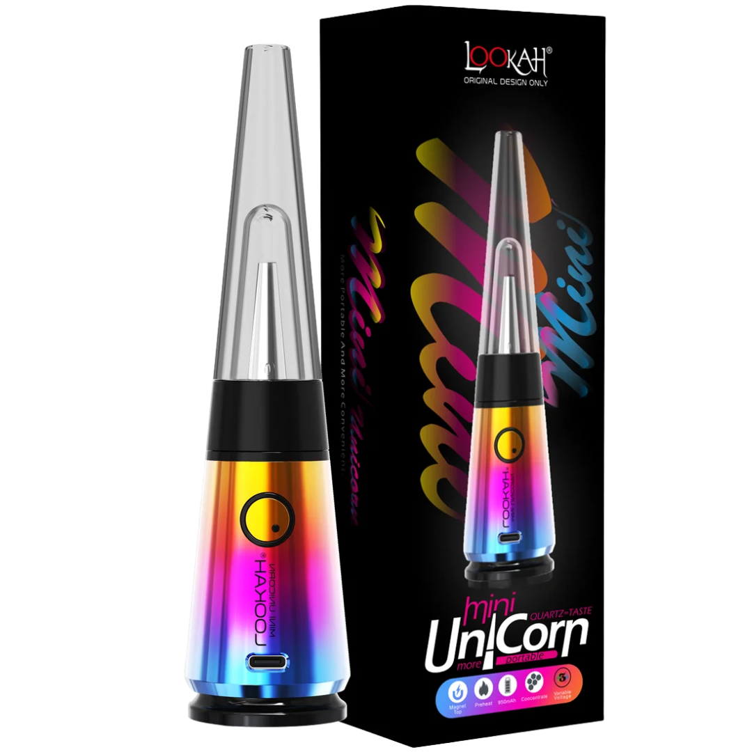 The Lookah Unicorn Mini is a compact electric dab rig built for dabbers who want water filtration without the torch hassle. With a 950mAh battery delivering up to 100 heat cycles per charge and a glass bubbler that fits in your palm, this is the portable e-rig that actually travels well. Three voltage settings let you dial in your vapor from flavor-forward to cloud-chasing territory.