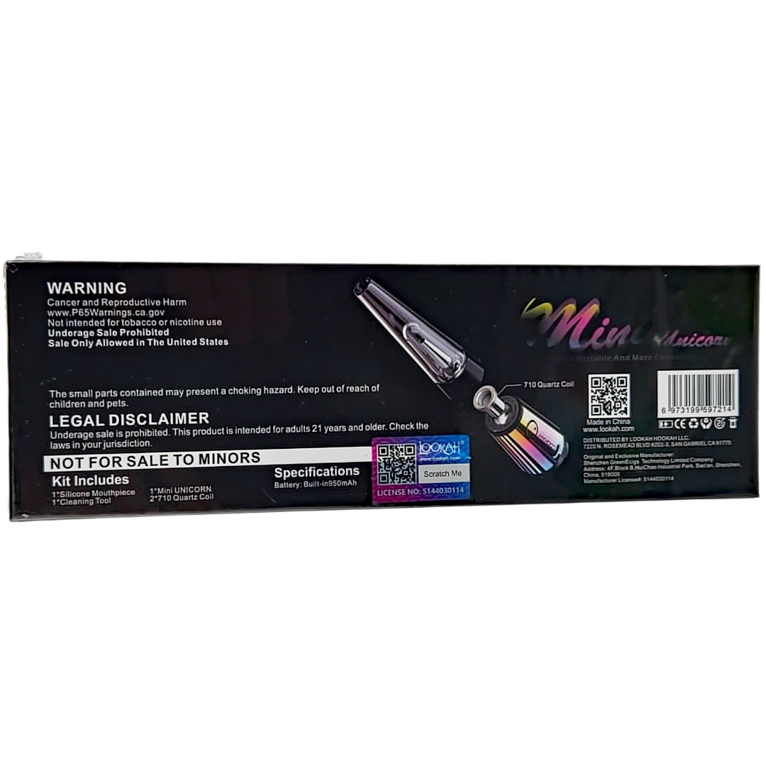 • Lookah Unicorn Mini device (battery base + glass bubbler)