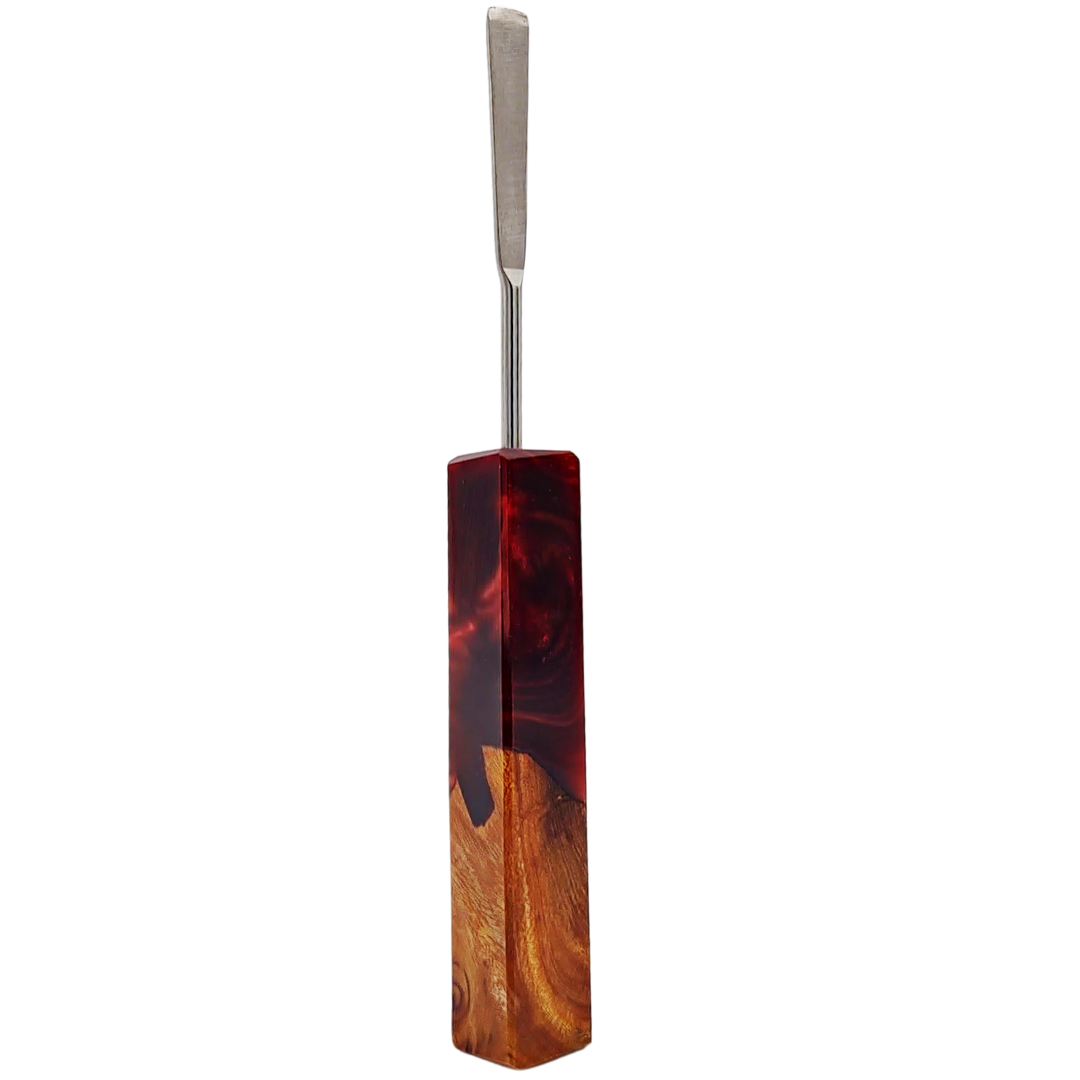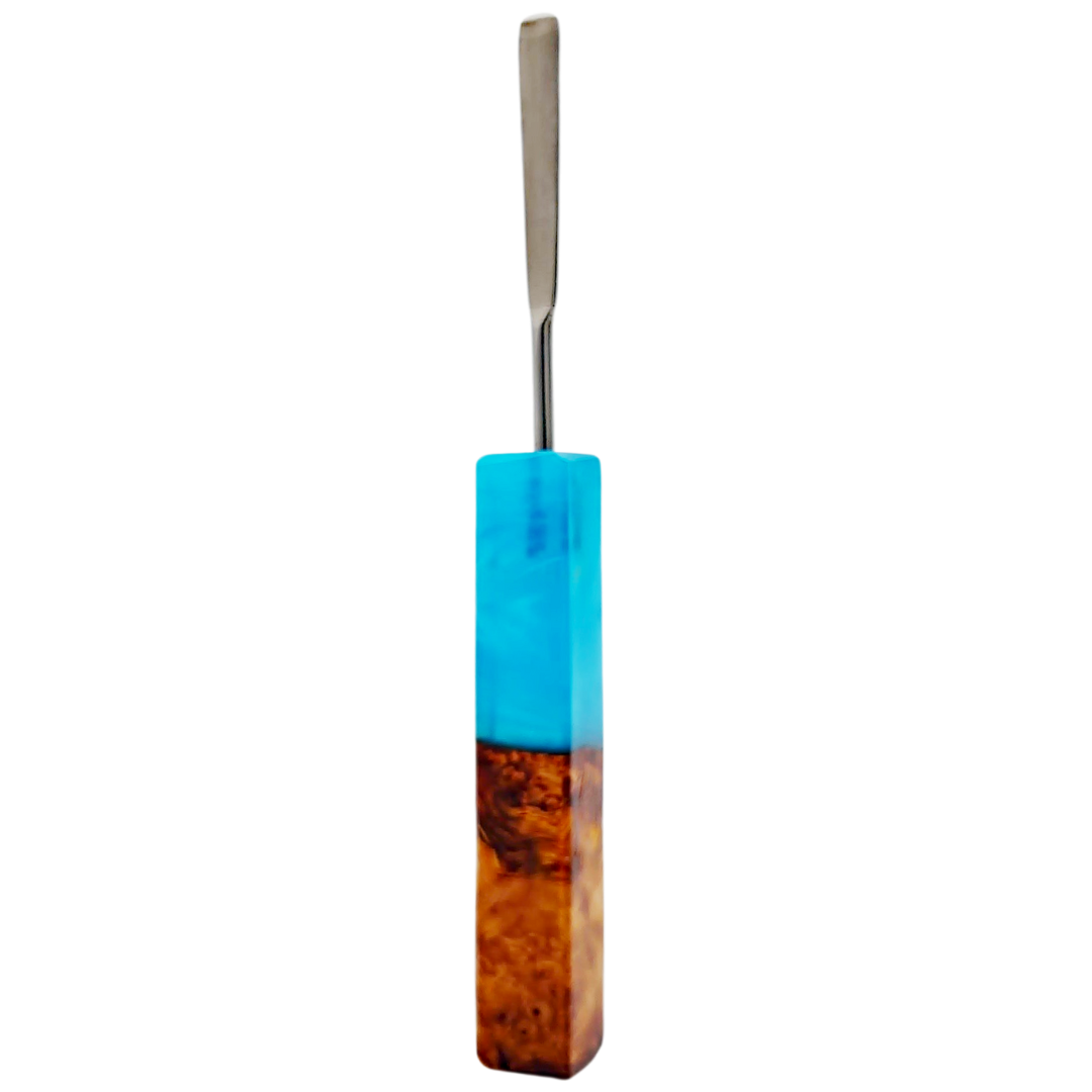 Let the working end cool after use, then wipe off any residue with a soft cloth or cotton swab. For deeper cleaning, soak only the tip in isopropyl alcohol, rinse thoroughly, and dry completely before next use. Keep the handle away from direct flame and avoid soaking the wood and resin section—a dry wipe is all it needs to maintain that finish.