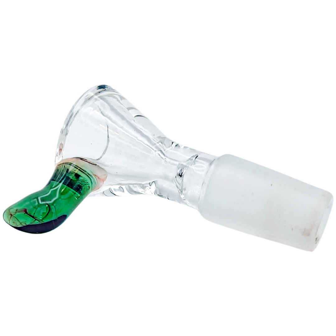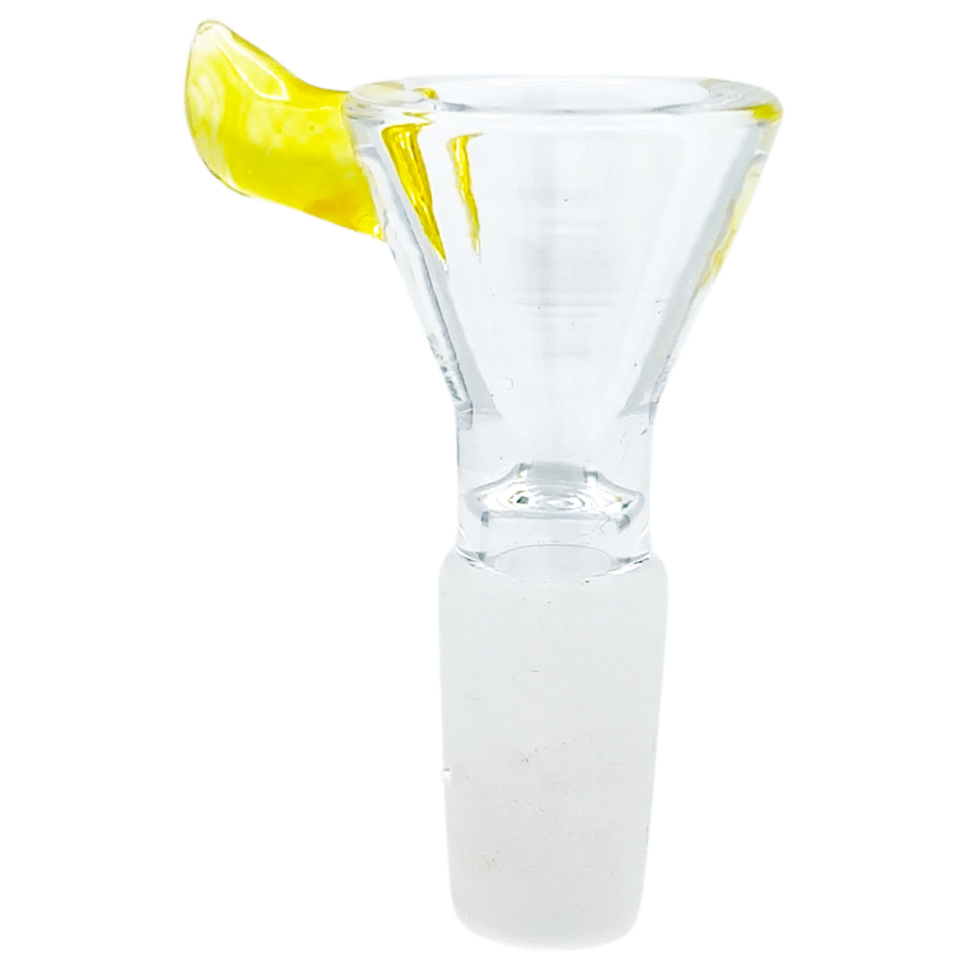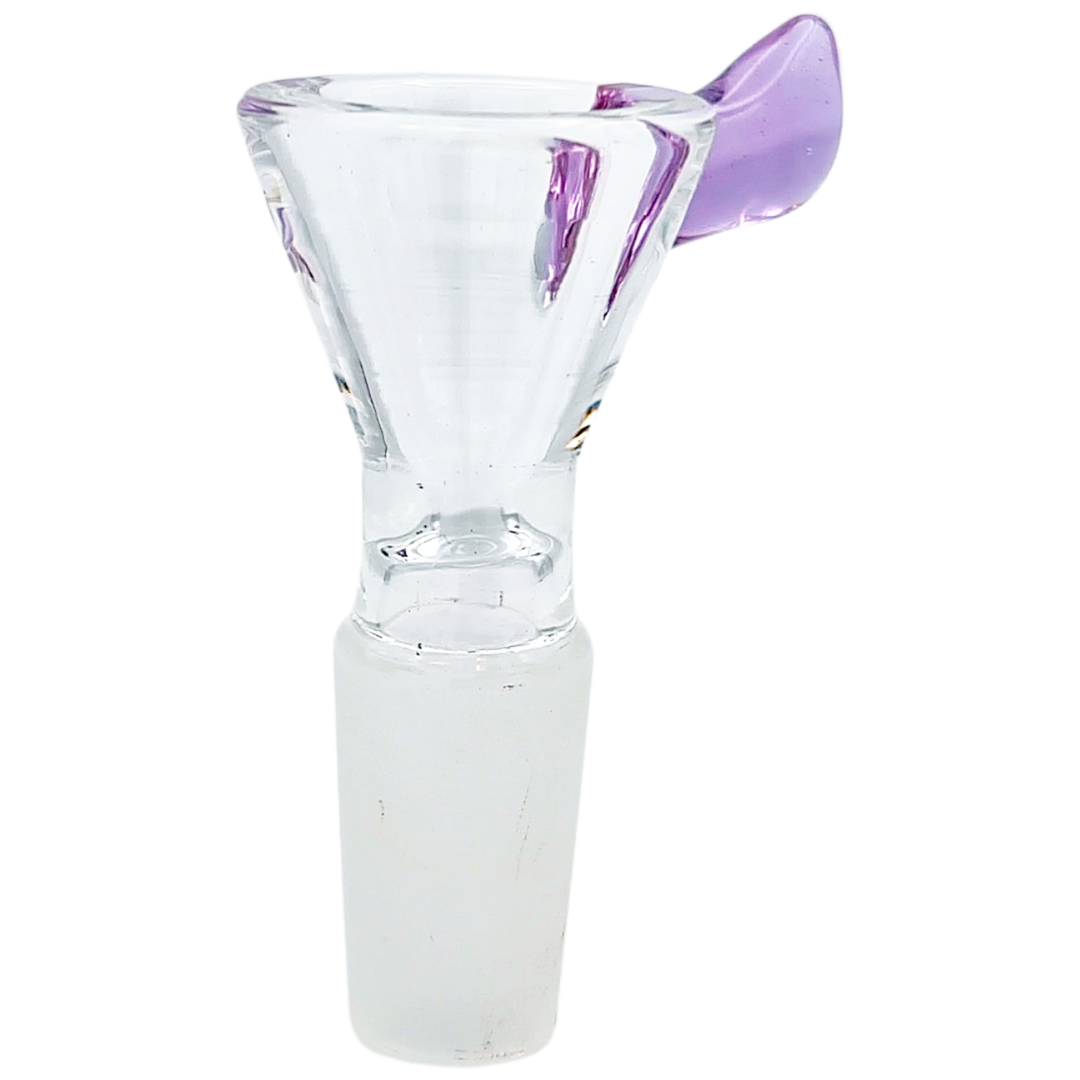 The 2″ 14MM CLEAR W/ COLOR HORN FLOWER BOWL is a compact glass slide built for flower smokers who want a simple upgrade that actually feels good in the hand. The clear body keeps things clean and classic, while the colored horn gives you something solid to grab so you’re not touching hot glass. At 2 inches (51mm) tall with a standard 14mm joint, it drops right into most daily driver bongs without any drama.