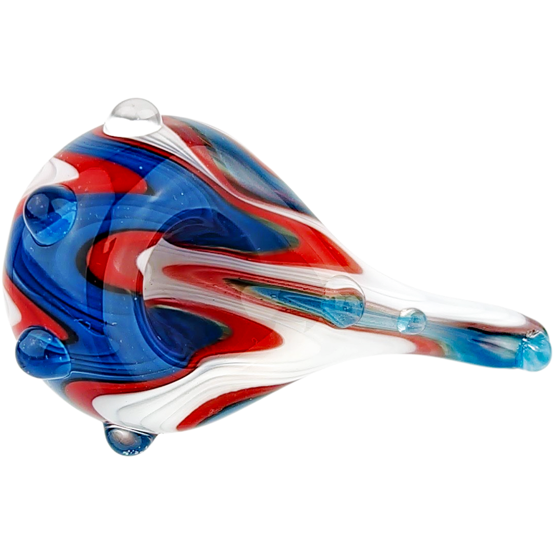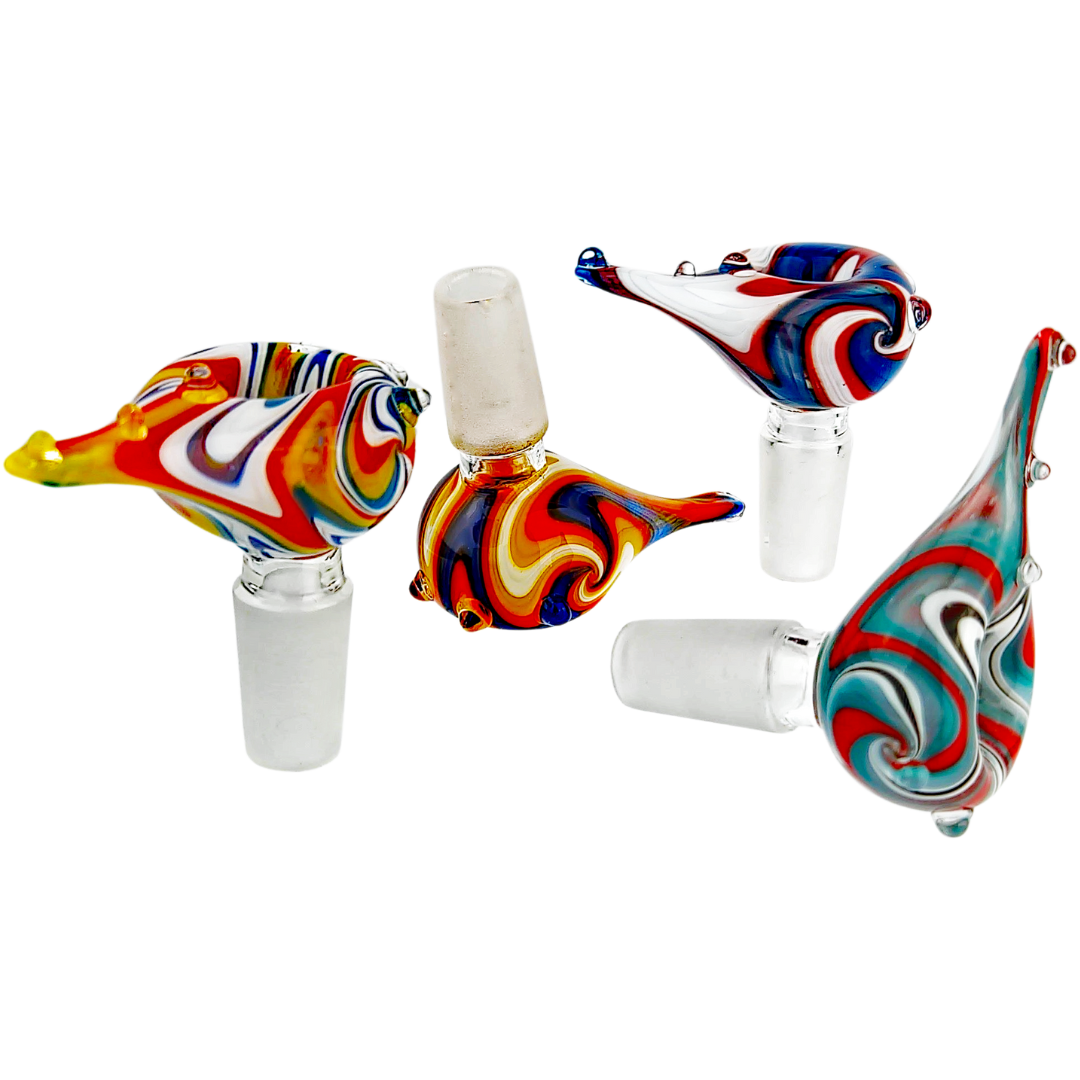 Colors and exact wigwag patterns are assorted, so each bowl is its own unique piece. You’ll get the same style (2″ seashell reversal bowl with marble grips), but the exact color mix and line work will vary.