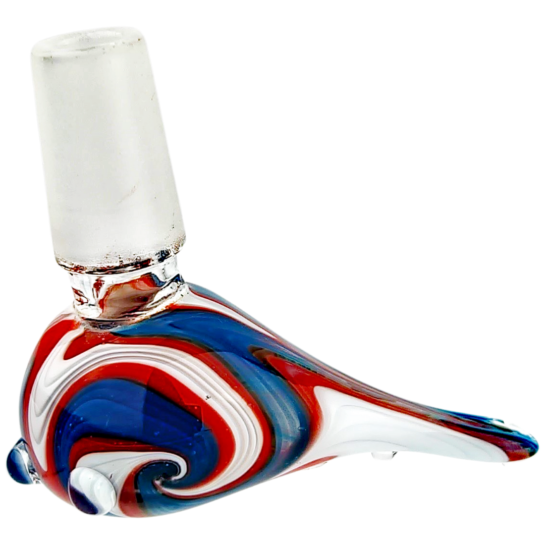 This is a 14mm male flower bowl, meant to fit into 14mm female joints on bongs and rigs. If your piece takes a 14mm downstem or slide, this will almost certainly drop right in. No adapters, no weird sizing — just standard glass shop spec.