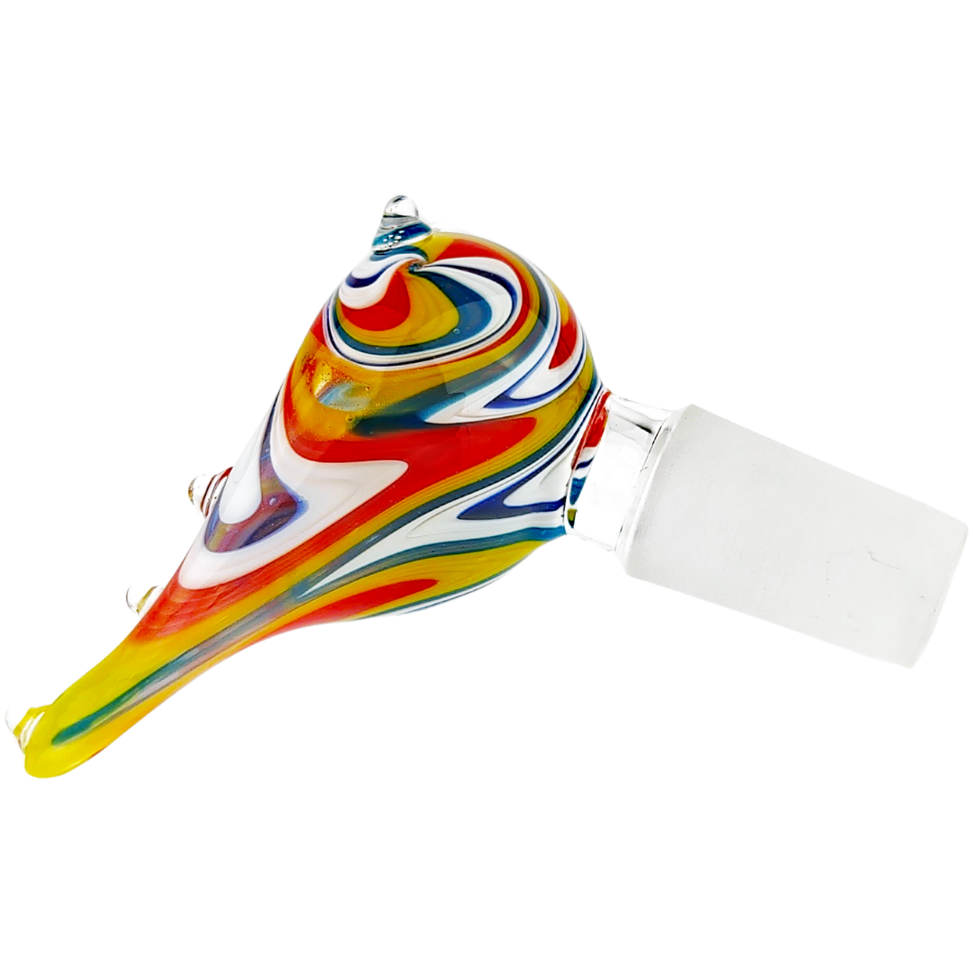 The 2″ 14mm Seashell Reversal Flower Bowl is an art-glass slide for flower lovers who want their setup to look as good as it hits. Built for 14mm pieces and daily drivers, it rocks a seashell-shaped bowl with a bold wigwag reversal pattern that actually stands out on the tray. At about 2 inches (51mm) long with clear marble grips, it’s made to be both pretty and practical.