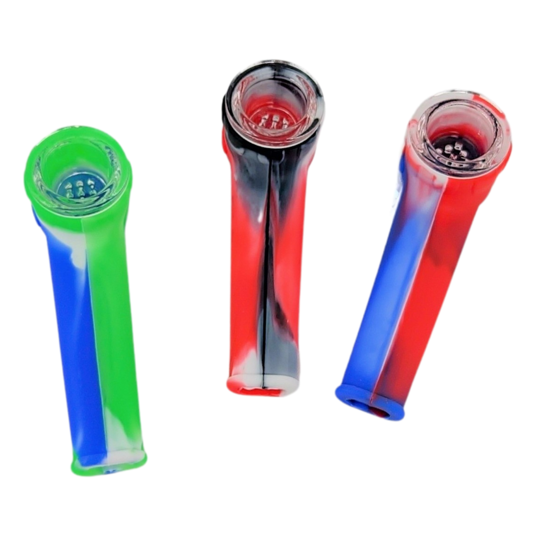 The glass bowl insert gives you cleaner flavor than smoking directly from silicone. Full silicone pipes can taste plasticky if the bowl gets too hot. This hybrid design keeps flavor clean while keeping the body unbreakable.