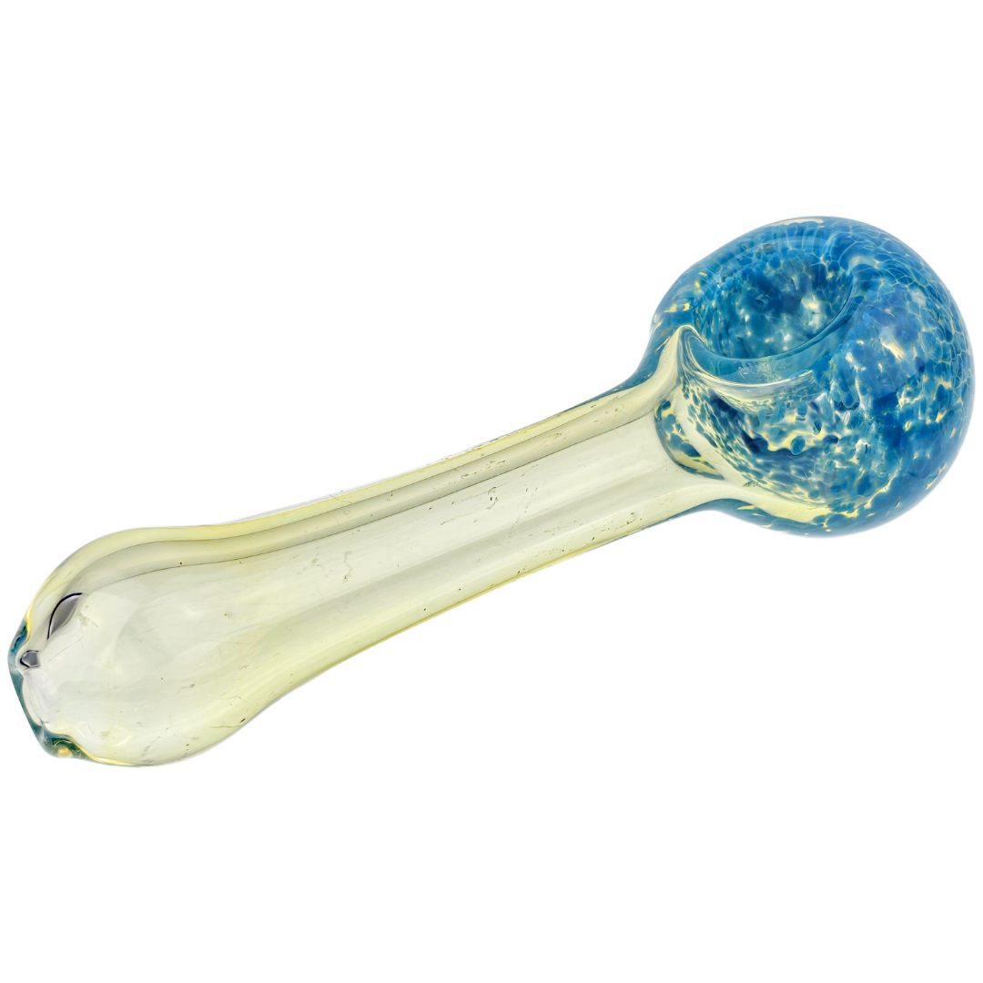 Fumed glass is made by vaporizing precious metals (usually silver or gold) onto molten glass during production. As you use the pipe and resin builds up, the fumed layer reacts and changes color — golds, purples, blues. It's a living finish that shifts over time.