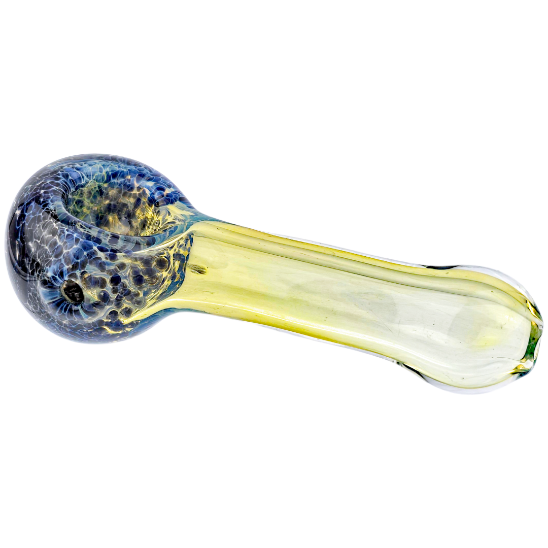 The Fume Body Frit Head Hand Pipe is a 3.5-inch glass spoon pipe built for smokers who want something compact, colorful, and cheap enough to keep as a backup. Fumed glass changes color over time as resin builds up, so this little guy gets more character with each session. At five bucks, it's the kind of piece you can toss in a bag without sweating it.