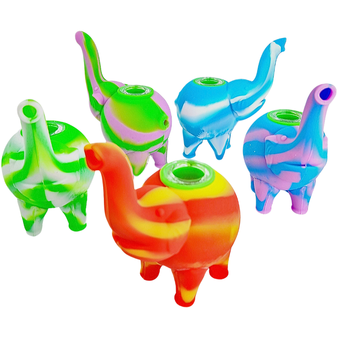 The 4.5″ Silicone Elephant Pipe is a compact hand pipe built for smokers who want something that won't shatter when life happens. The sculpted elephant design sits comfortably in your hand, and the removable glass flower bowl means you get clean hits without the full fragility of an all-glass piece. At this size, it's pocket-friendly enough to toss in a bag without worrying about it cracking on your keys.