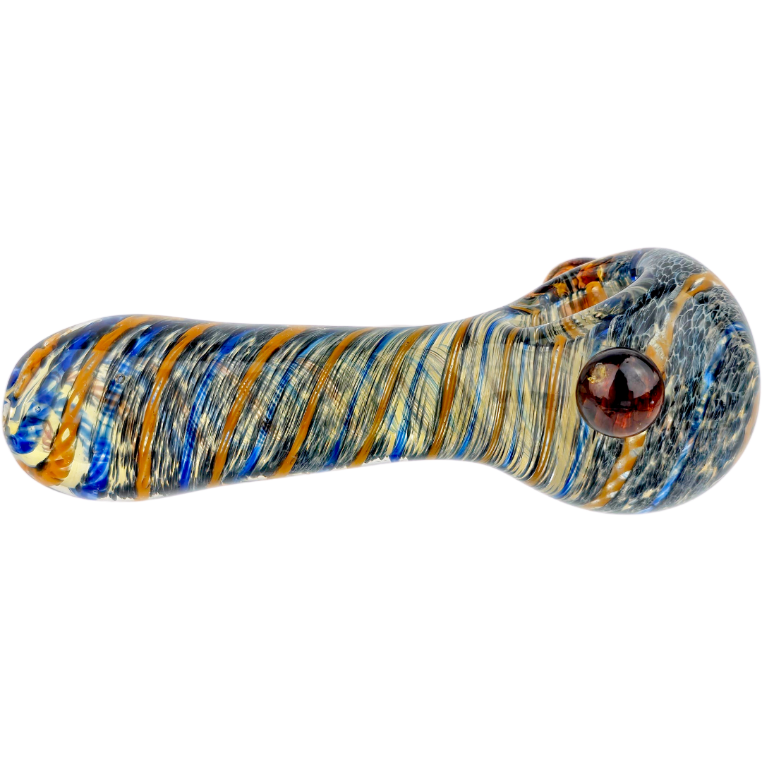 Absolutely. Spoon pipes are one of the easiest ways to smoke flower — no water to deal with, straightforward packing and lighting, and easy to clean. The fumed glass and frit just add visual interest without complicating the design. This is a solid first pipe or a low-stress backup for anyone.