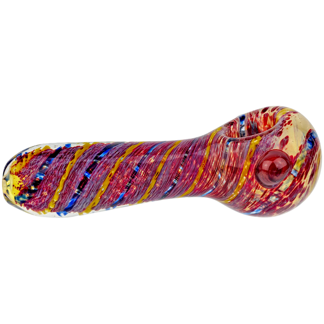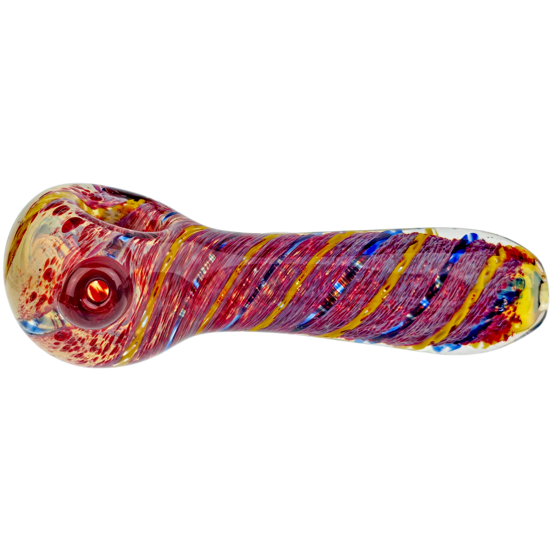The 5-Inch Frit Color Swirl Fume Hand Pipe is a compact glass spoon pipe built for flower smokers who want something pocketable without sacrificing visual interest. At 5 inches, it's small enough to toss in a backpack or stash drawer, but still delivers smooth hits thanks to the classic spoon design. The frit technique — crushed glass bits applied to the surface — creates texture and visual depth, while fumed glass means the pipe changes color as you use it, developing darker hues and unique patterns over time.