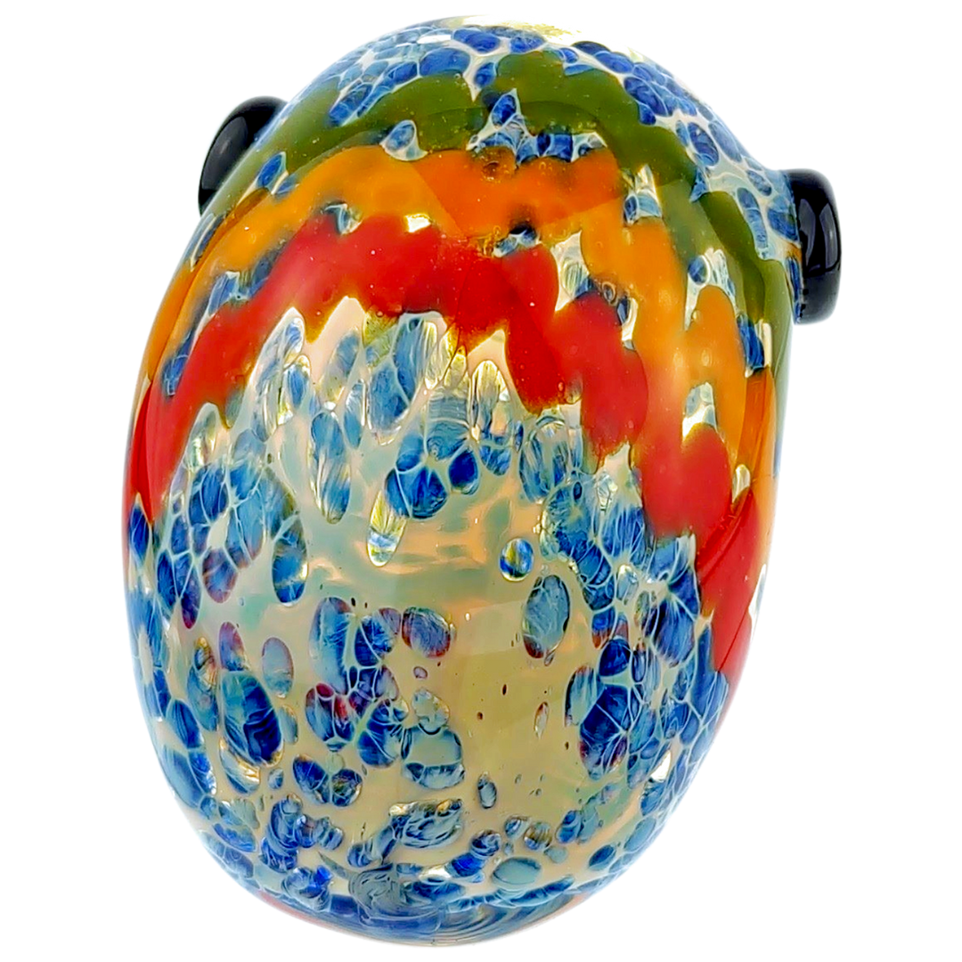 The fume work in this glass isn't surface-level decoration — it's worked into the material itself. As resin builds inside over time, the colors can deepen and shift, giving it that "broken in" look that heady glass collectors actually chase. Some people keep their pipes spotless; others let them season a bit. Both approaches work here.