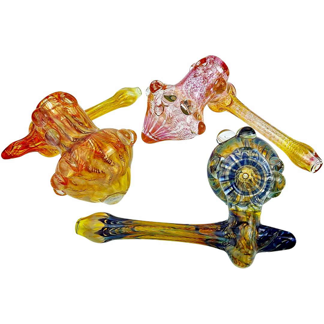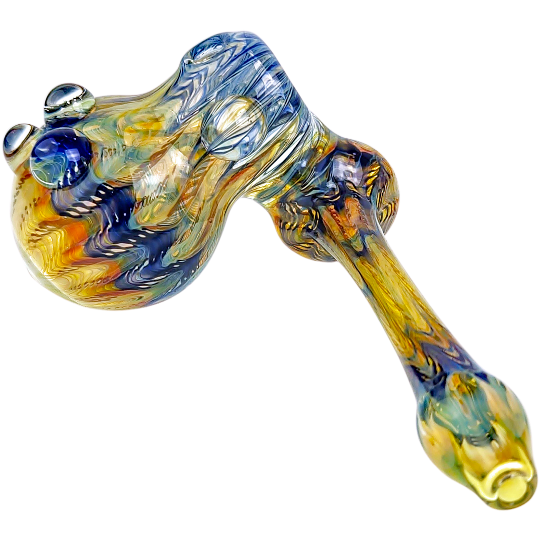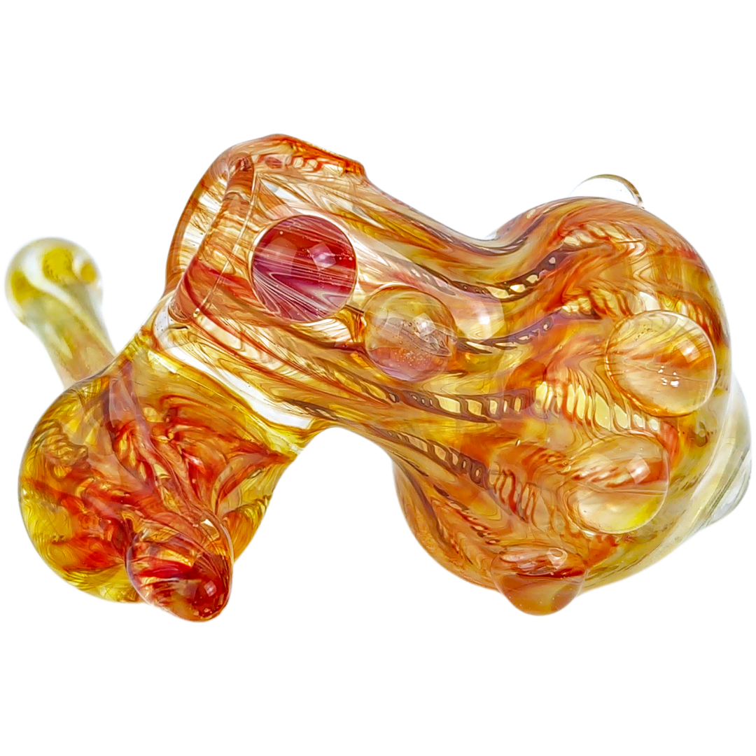 This piece works just like a standard dry hand pipe, but the sidecar layout changes the feel in a good way. The bowl sits out front while the mouthpiece is kicked off to the side, so the heat and any stray ash are farther from your face. That offset angle also makes it a little easier to see what you’re doing while you’re working the bowl, especially when you’re mid-sesh and not trying to think too hard.