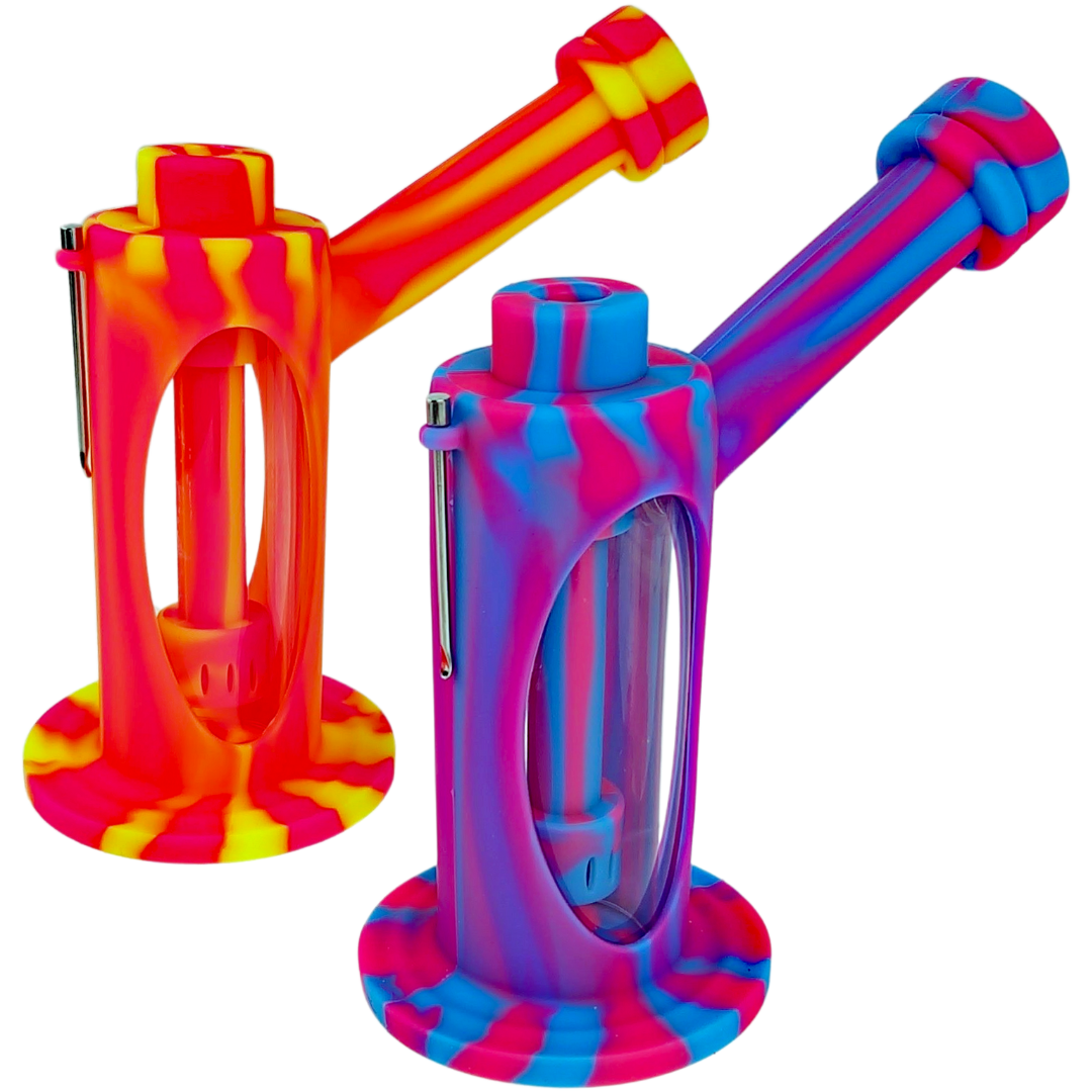 The magic here is the combo of materials: silicone on the outside, glass on the inside. The silicone section helps absorb impact and makes the piece easier to grip, even with sticky hands or rosin on your fingers. The glass body still handles the water and vapor, so you’re not sacrificing taste just to get something more durable.