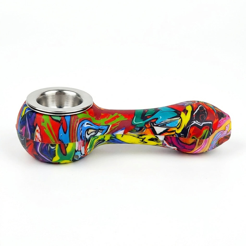 The 3.5-Inch Silicone Decal Hand Pipe is a compact, durable spoon pipe built for everyday smokers who need something portable that won't break when life gets rough. At 3.5 inches, it's small enough to toss in a backpack or pocket, but long enough to keep smoke cool before it hits your lungs. The metal bowl and threaded lid mean you can load it up, cap it off, and head out without spilling flower everywhere.