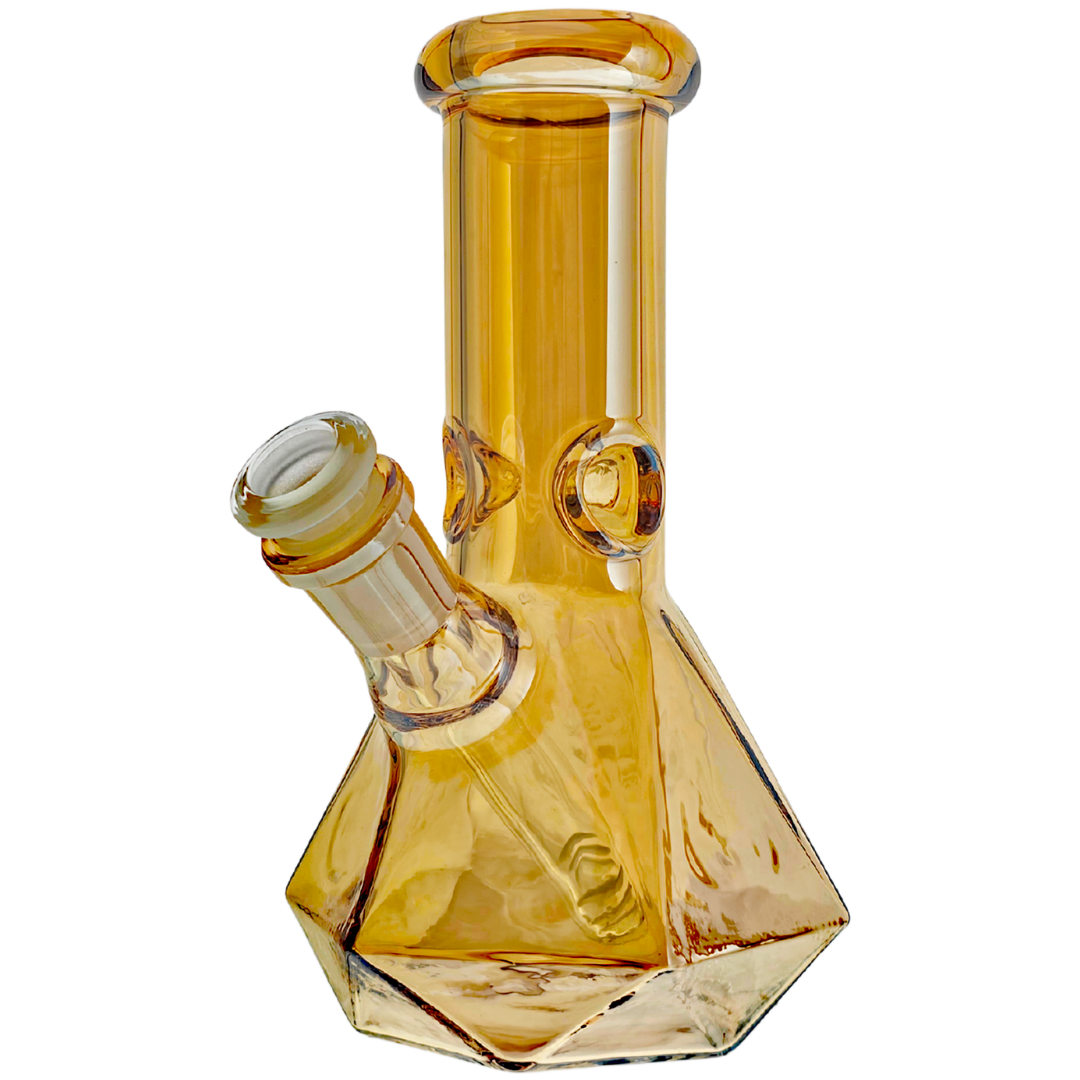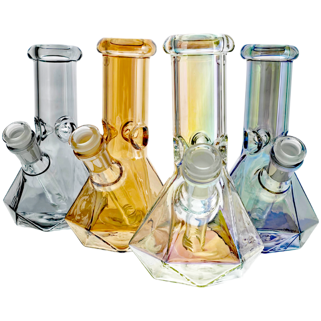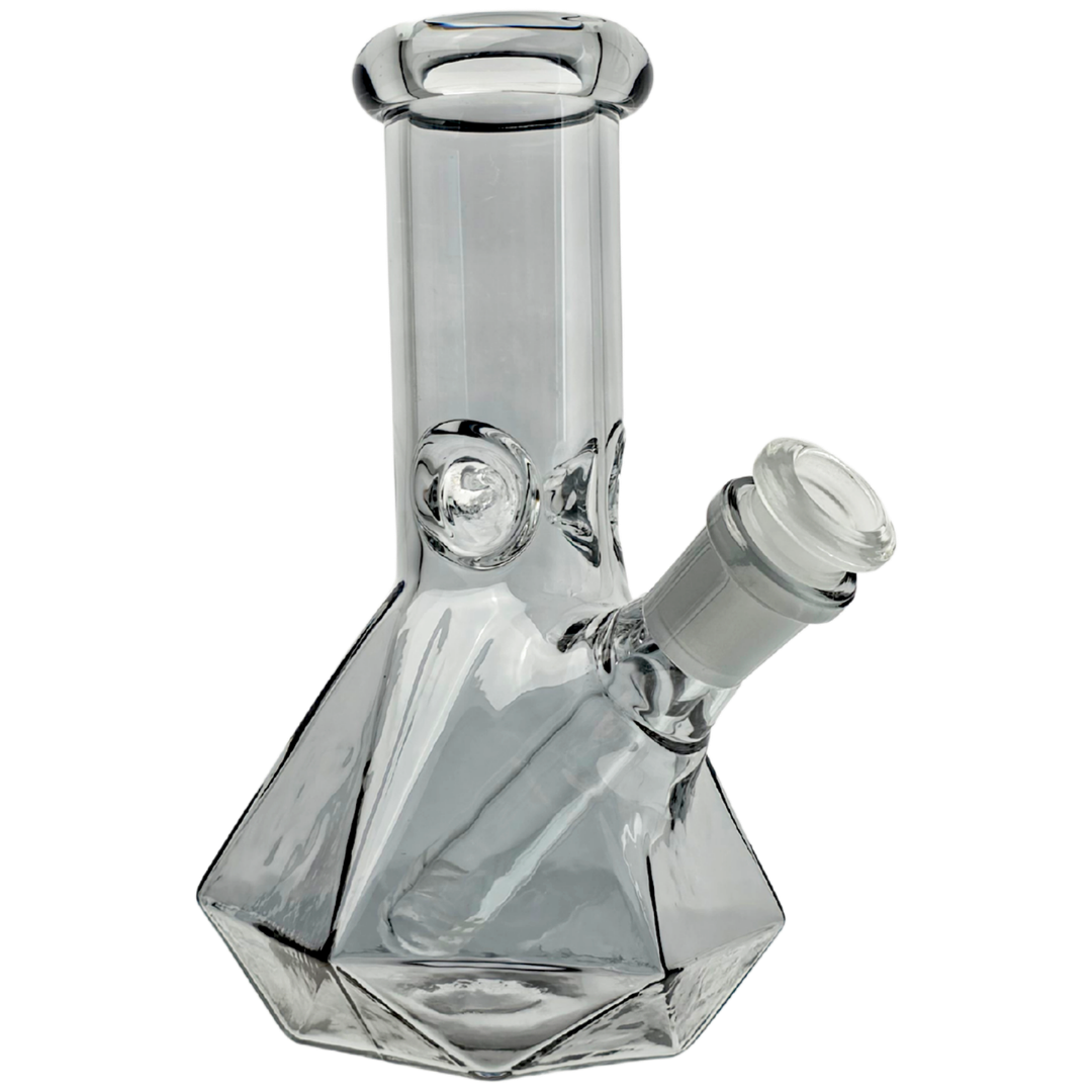 A 6.5-inch beaker bong that brings the classic wide-base stability you expect, with a geometric faceted neck and an iridescent finish that shifts color depending on the light. Compact enough to keep on a side table, tall enough to diffuse smoke properly with a standard downstem.