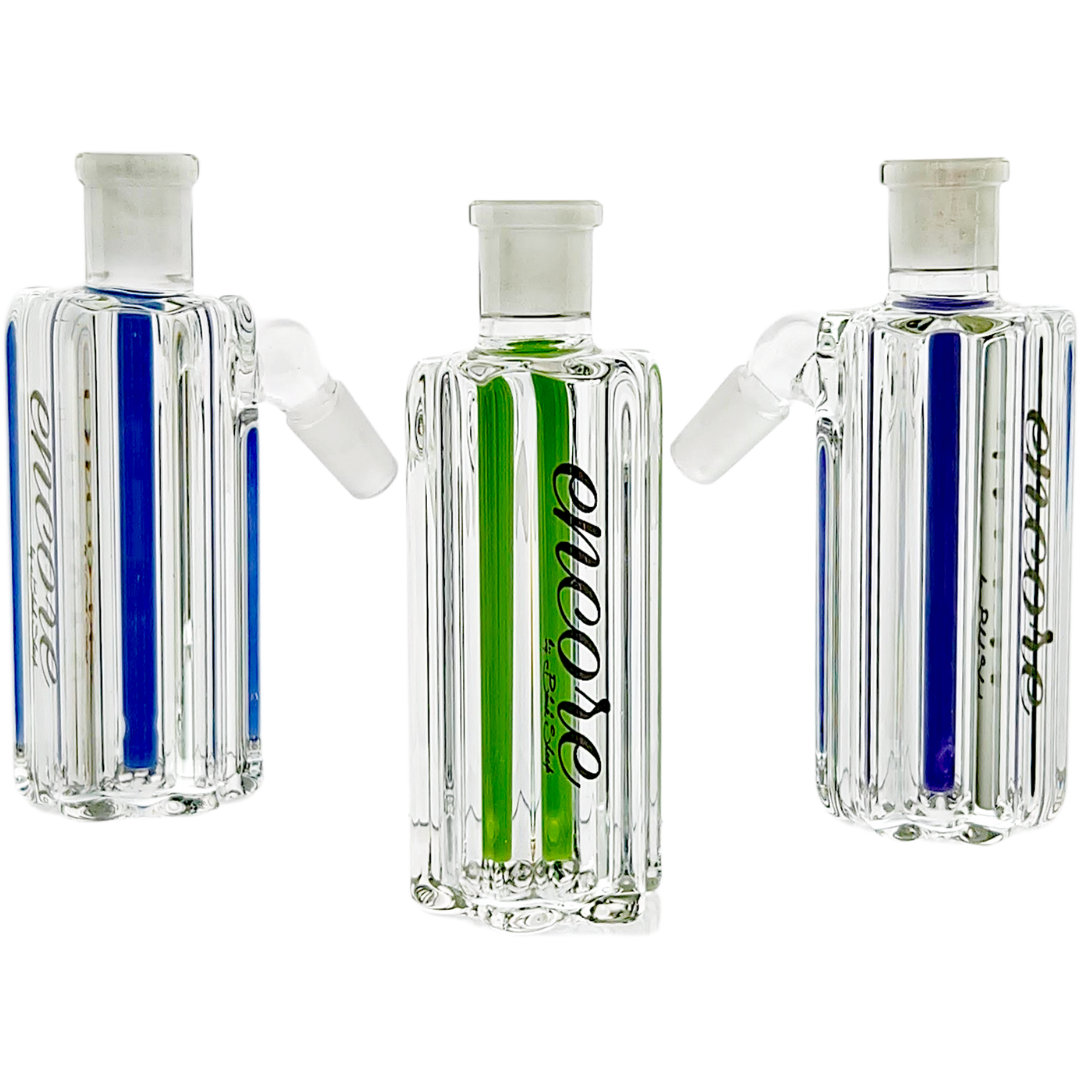 Drop the Encore Babyface Ash Catcher into any 14mm female, 45° joint and it becomes the new front line for your hits. Your bowl or banger goes into the top joint on the ash catcher, and the bottom joint slides into your bong’s joint, giving your smoke an extra water stop before it hits the main chamber.