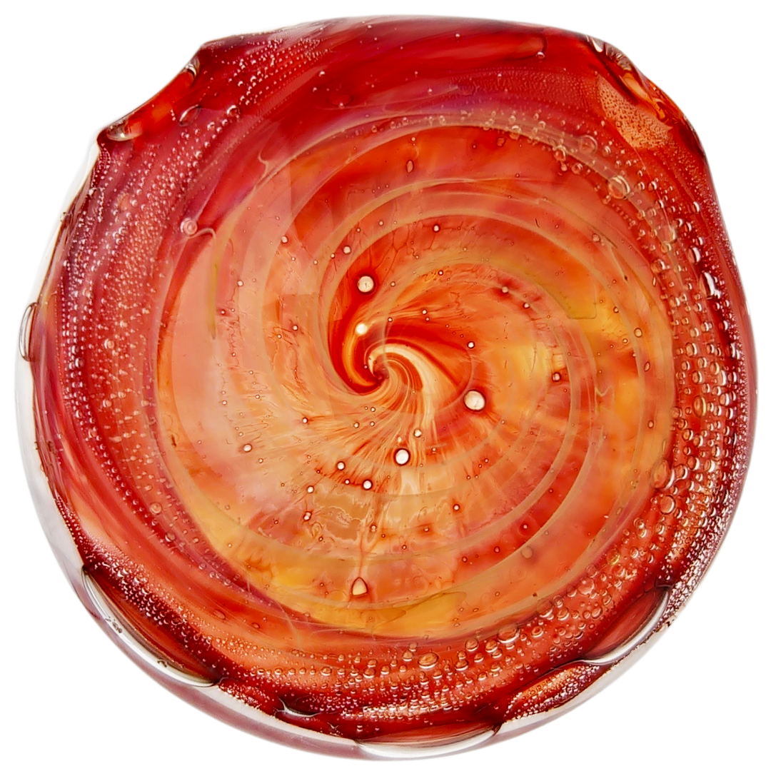 The 2″ Red Spiral Pendant is a hand-crafted glass pendant for people who like their accessories loud, trippy, and a little bit heady. At about 2 inches (50.8mm) tall, it’s big enough to catch light from across the room without feeling heavy on your chest. The tight red spiral pulls your eye right into the center, making it one of those pieces people keep staring at while you talk.