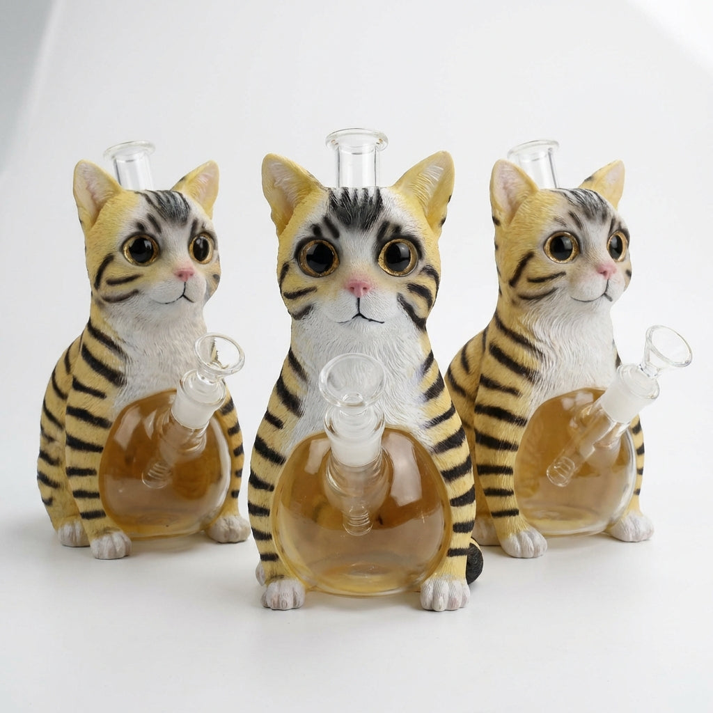 The Tabby Cat Water Pipe is an 8.8-inch glass and PVC piece built for smokers who want their gear to have personality. Combining smooth water filtration with a detailed feline design, this compact pipe works as both a functional daily piece and a conversation starter on any coffee table.