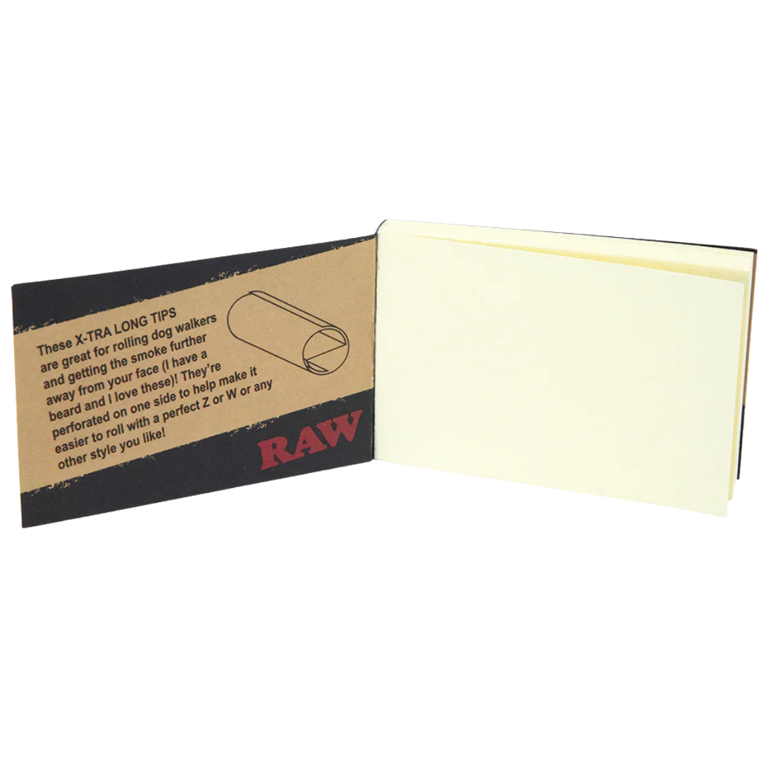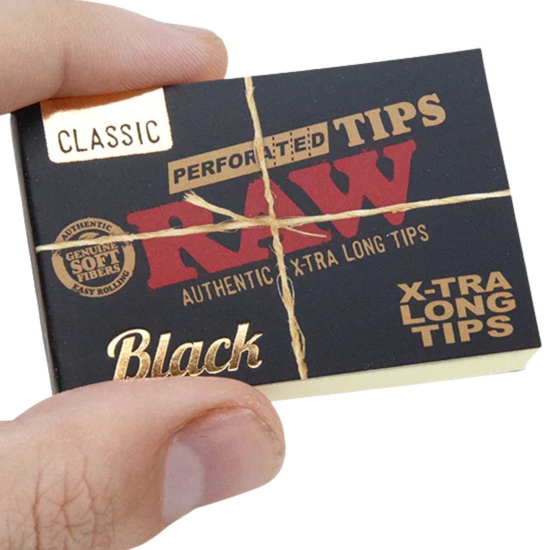 The RAW Black Classic Extra Long Perforated Tips are designed for people rolling bigger joints who want a solid filter and more space between their face and the cherry. These tips give you extra length for dog walkers, L-papers, or any time you're rolling something that needs a longer tip to balance out the build. The perforations make shaping easy—whether you prefer a Z-fold, W-fold, or your own style.