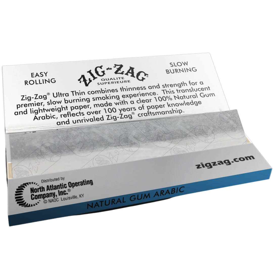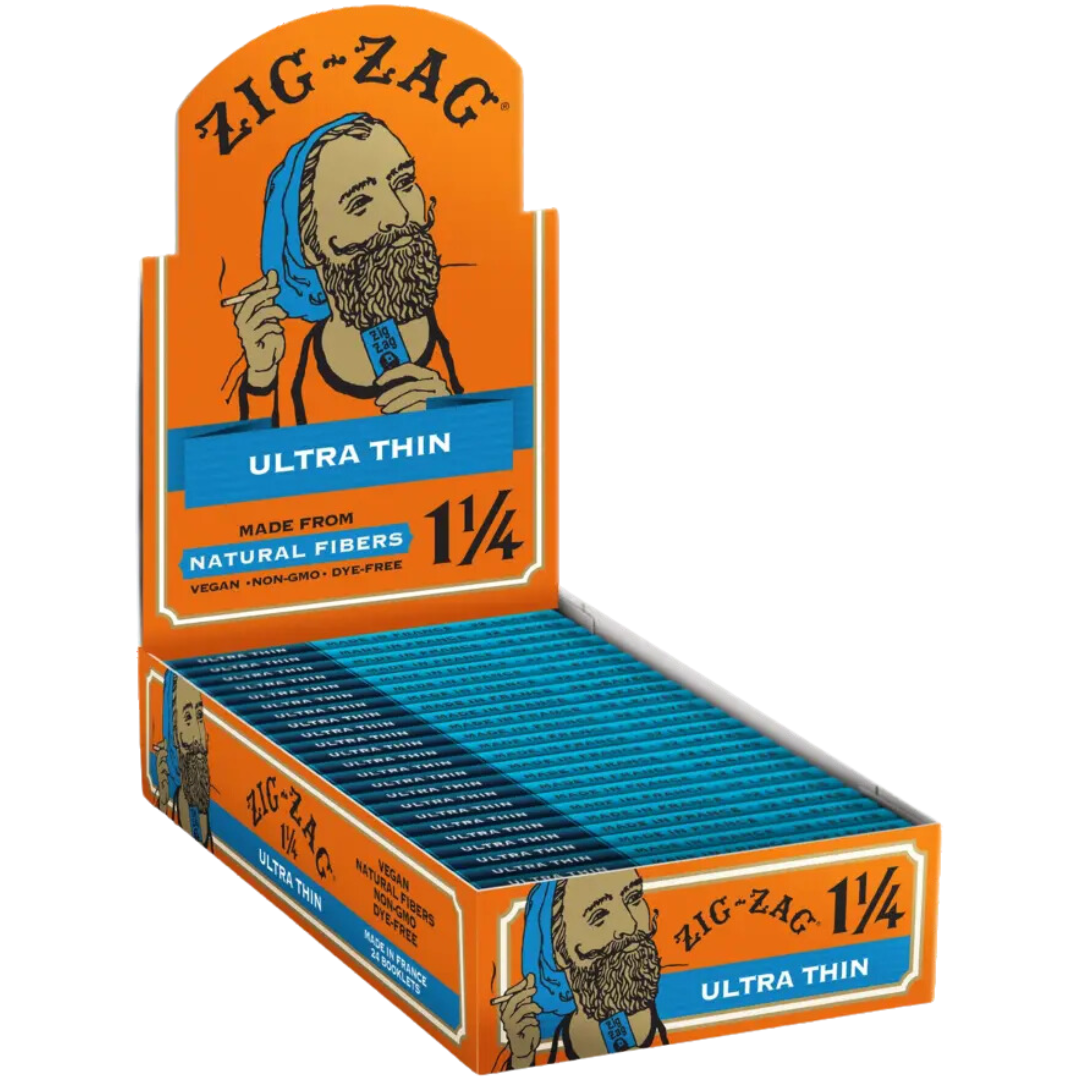 The Zig Zag 1 ¼ Ultra Thin Papers are classic rolling papers made from natural flax plant fibers, built for smokers who want a thin, slow-burning paper that doesn't mess with flavor. Each 78mm x 44mm sheet seals with 100% natural gum Arabic—no weird aftertaste, just a clean smoke. This carton includes 24 booklets with 32 papers each, so you're stocked for a while.