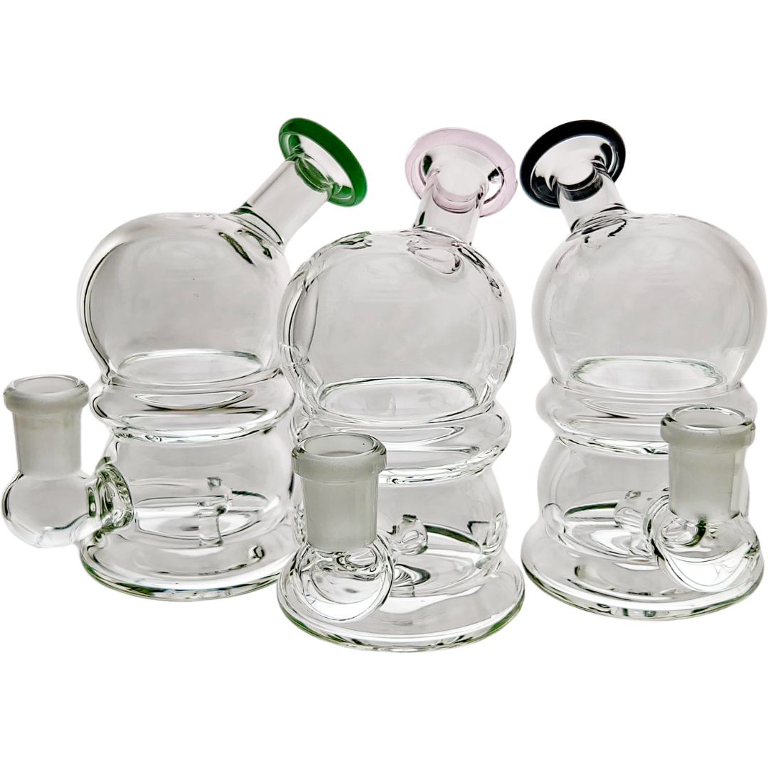 The 4.5" Color Lip Snow Globe Rig is a compact glass dab rig built for concentrate fans who want real function in a small footprint. It’s ideal if you’re tight on space, sesh at your desk or bedside, or just don’t want a giant tower of glass to babysit. The round snow globe chamber and 4.5 inch (114mm) height give you surprisingly smooth hits from a rig that’s easy to grab, clear, and stash.