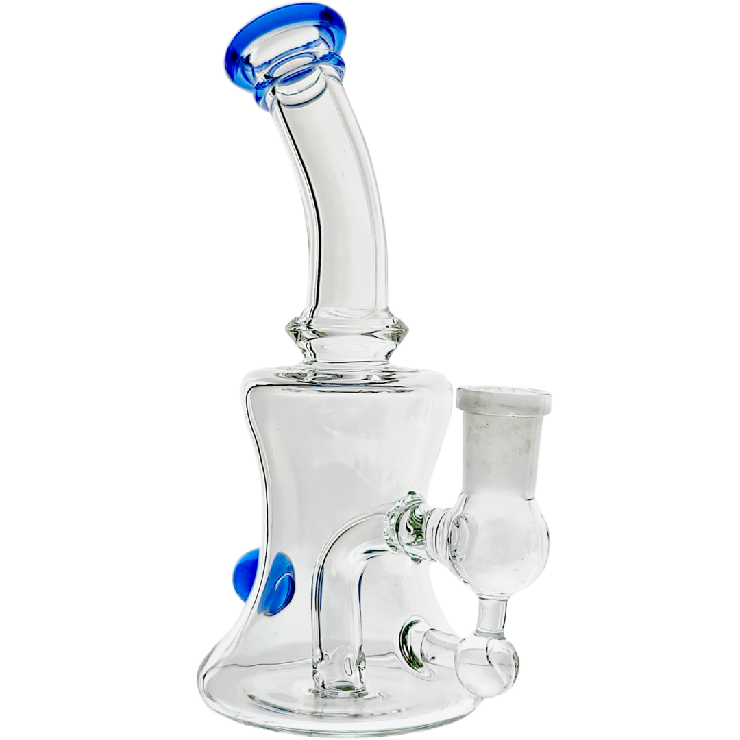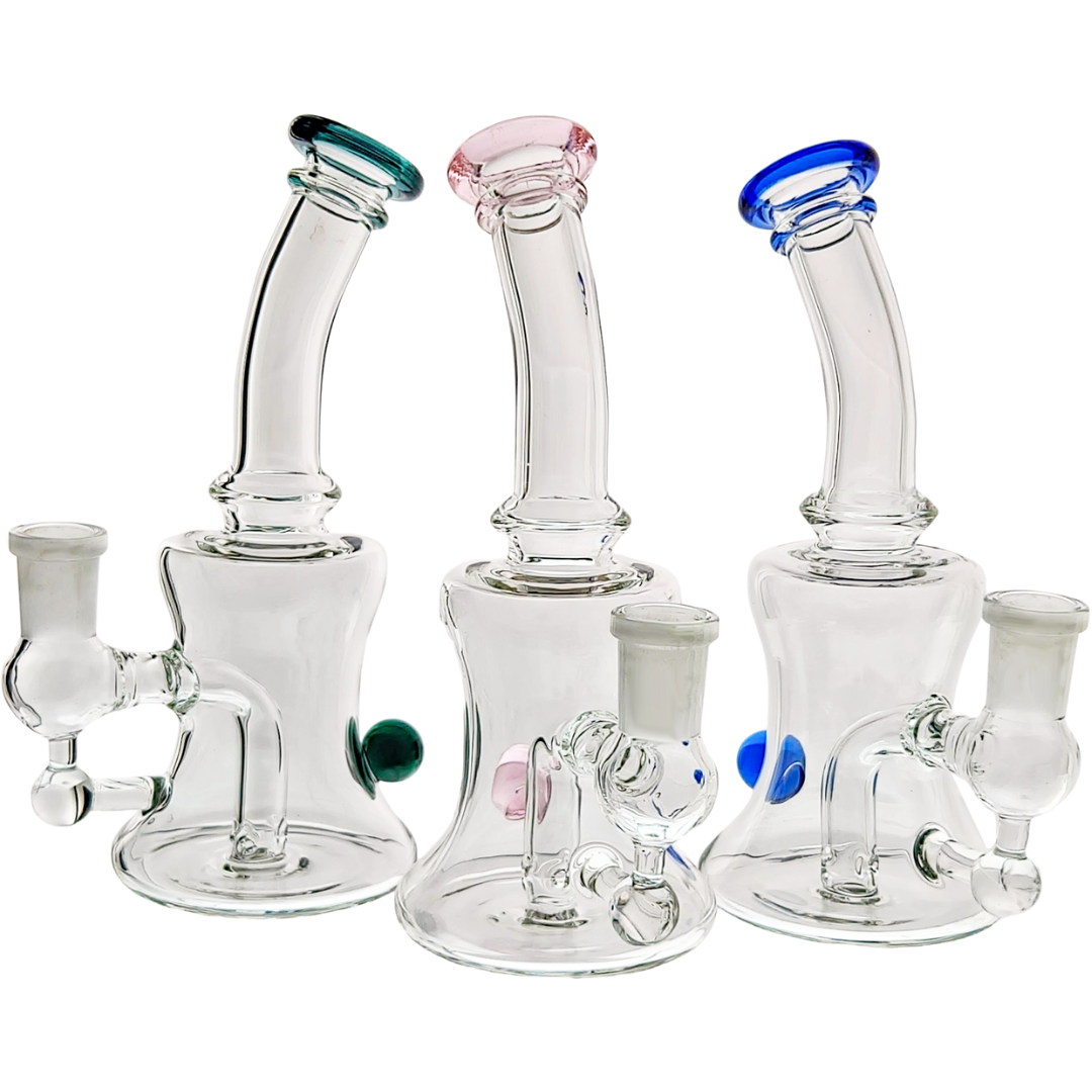 The 6" Color Lip/Marble Peanut Rig is a compact glass dab rig made for concentrate fans who want real function in a small footprint. At just 6 inches (152mm) tall with a 14mm male joint and a chunky puck base, it’s a perfect little daily driver that doesn’t hog your table. The peanut-shaped body, color lip, and matching marble give it that "what rig is that?" look while the two-hole perc keeps hits smooth and flavorful.