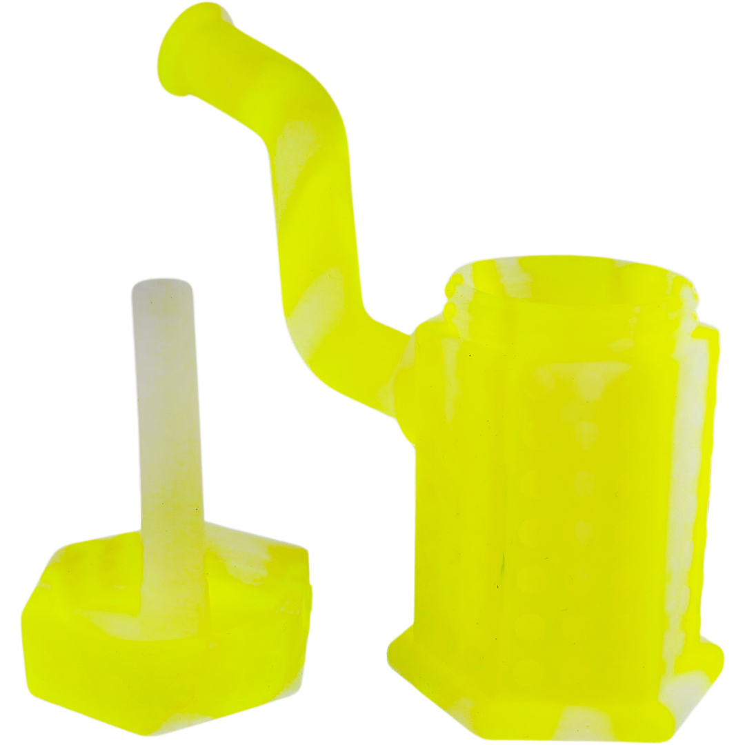 The 6" Silicone Hexagon Rig is a compact dab rig built for people who are hard on their glass, travel a lot, or just want a worry-free daily driver. At only 6 inches (152mm) tall with a 14mm 90° banger included, it’s ready to go right out of the box. The hexagon base and full silicone body keep it sturdy, nearly unbreakable, and easy to toss in a bag without stressing.