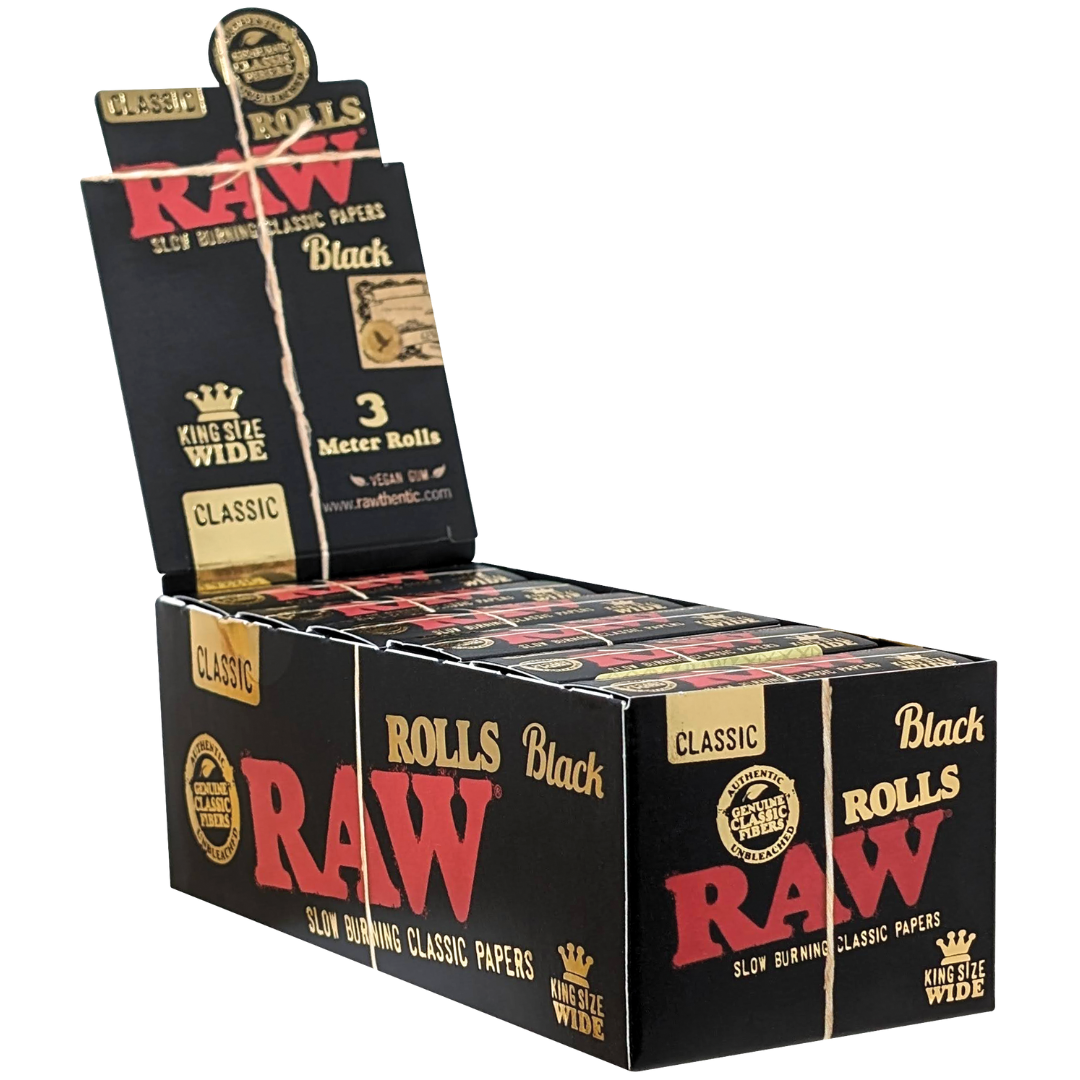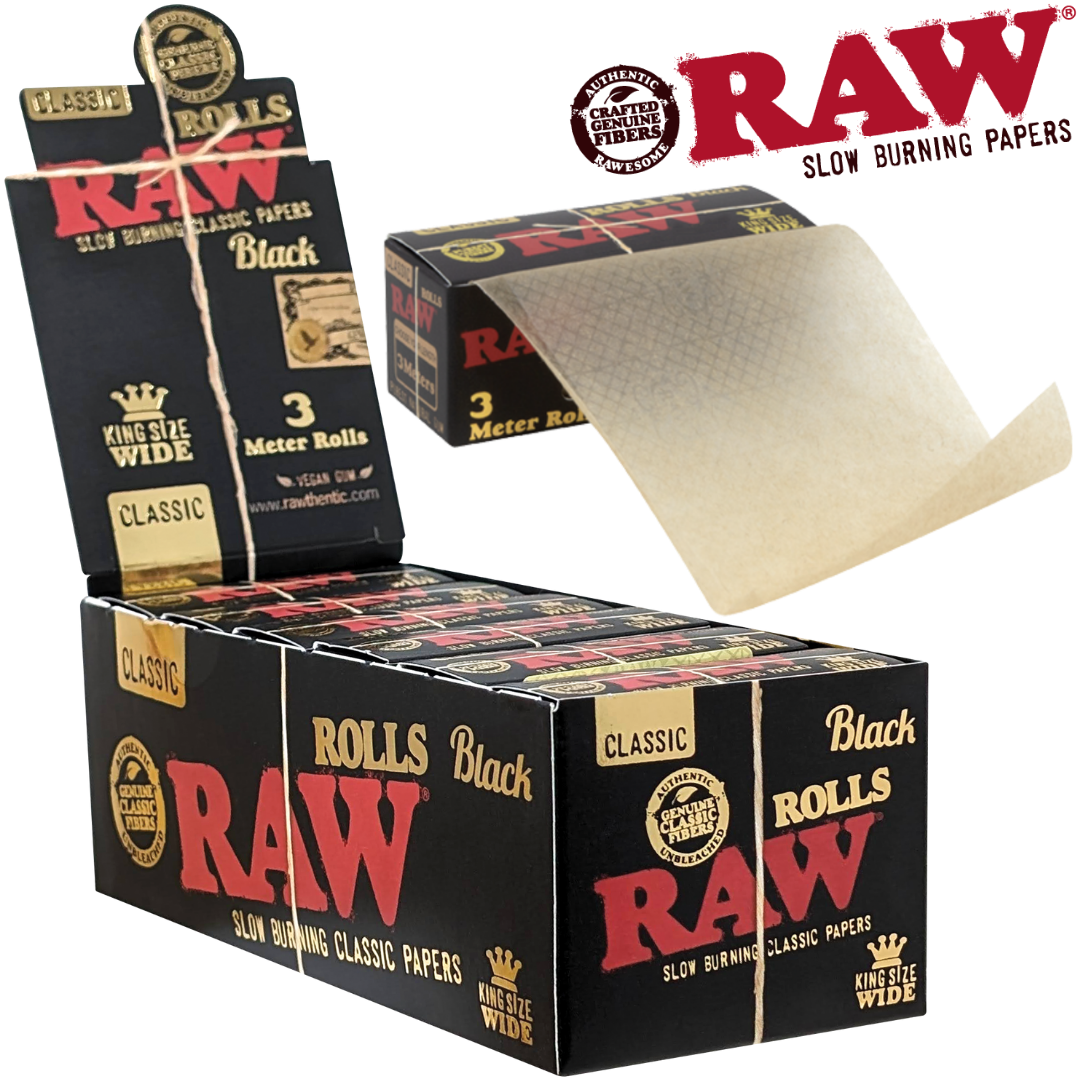 • 12 rolls of RAW Black Classic King Size Wide rolling paper (3 meters each)