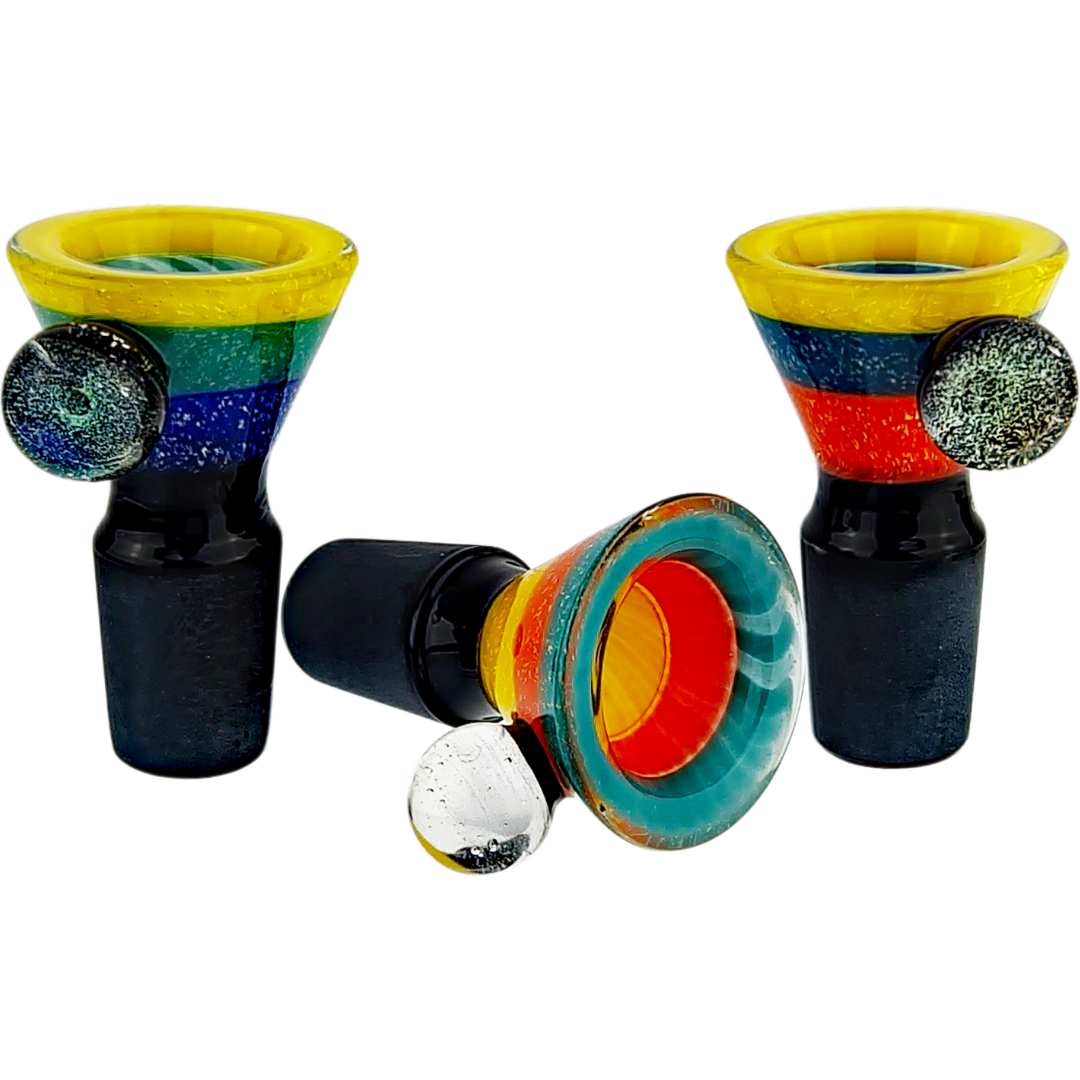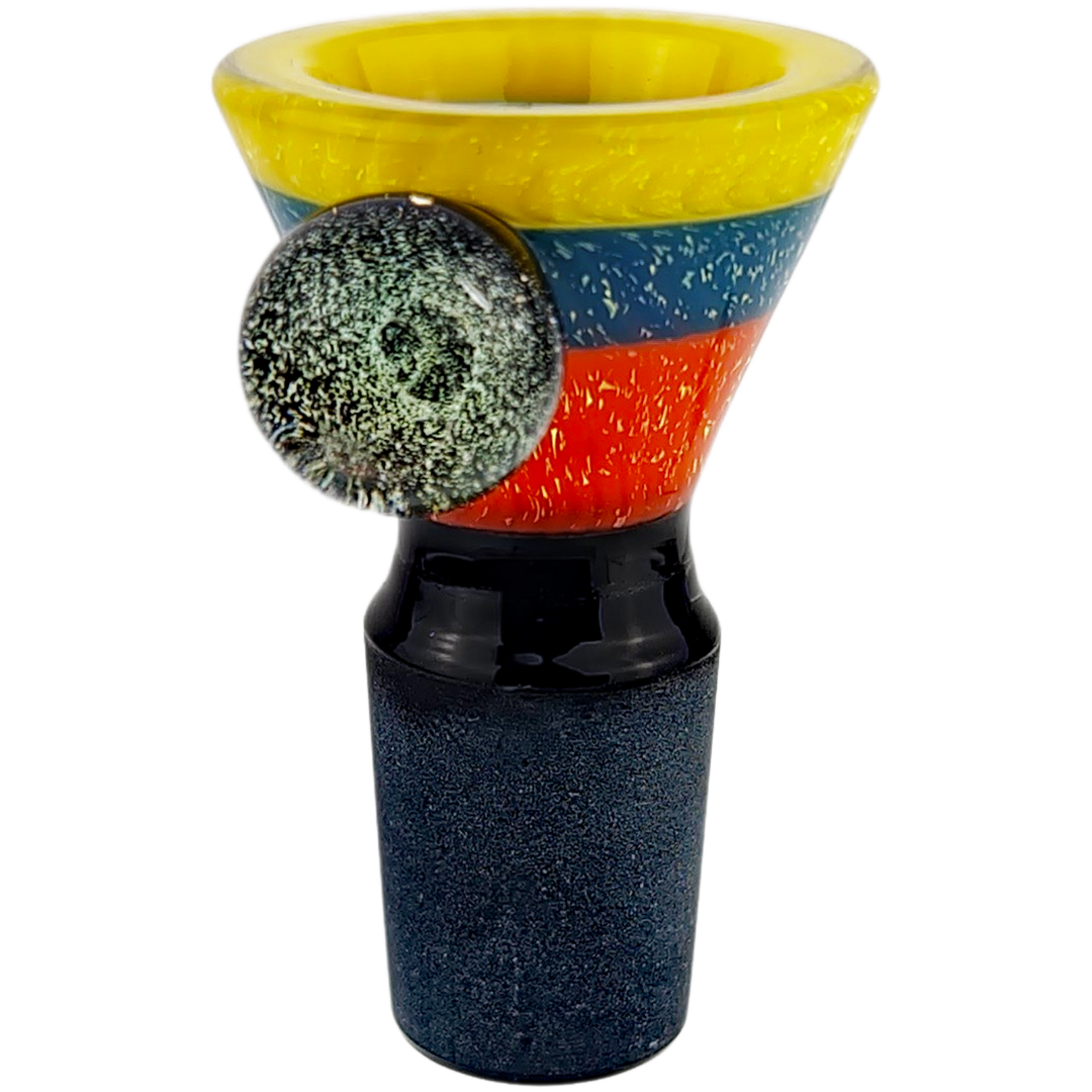 This bowl is made for flower heads who want their daily driver to look as good as it hits. If you’re running a big 18mm beaker or straight tube and you’re tired of the boring clear slide it came with, this is a plug-and-play glow-up. It’s also a solid pick for anyone slowly building a little gallery of colorful glass without jumping straight into ultra-fragile heady art.
