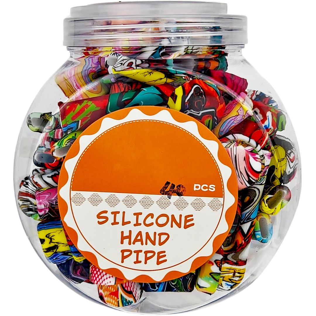 3.5″ Silicone Decal Hand Pipe w/ Metal Bowl & Lid – 40ct Jar