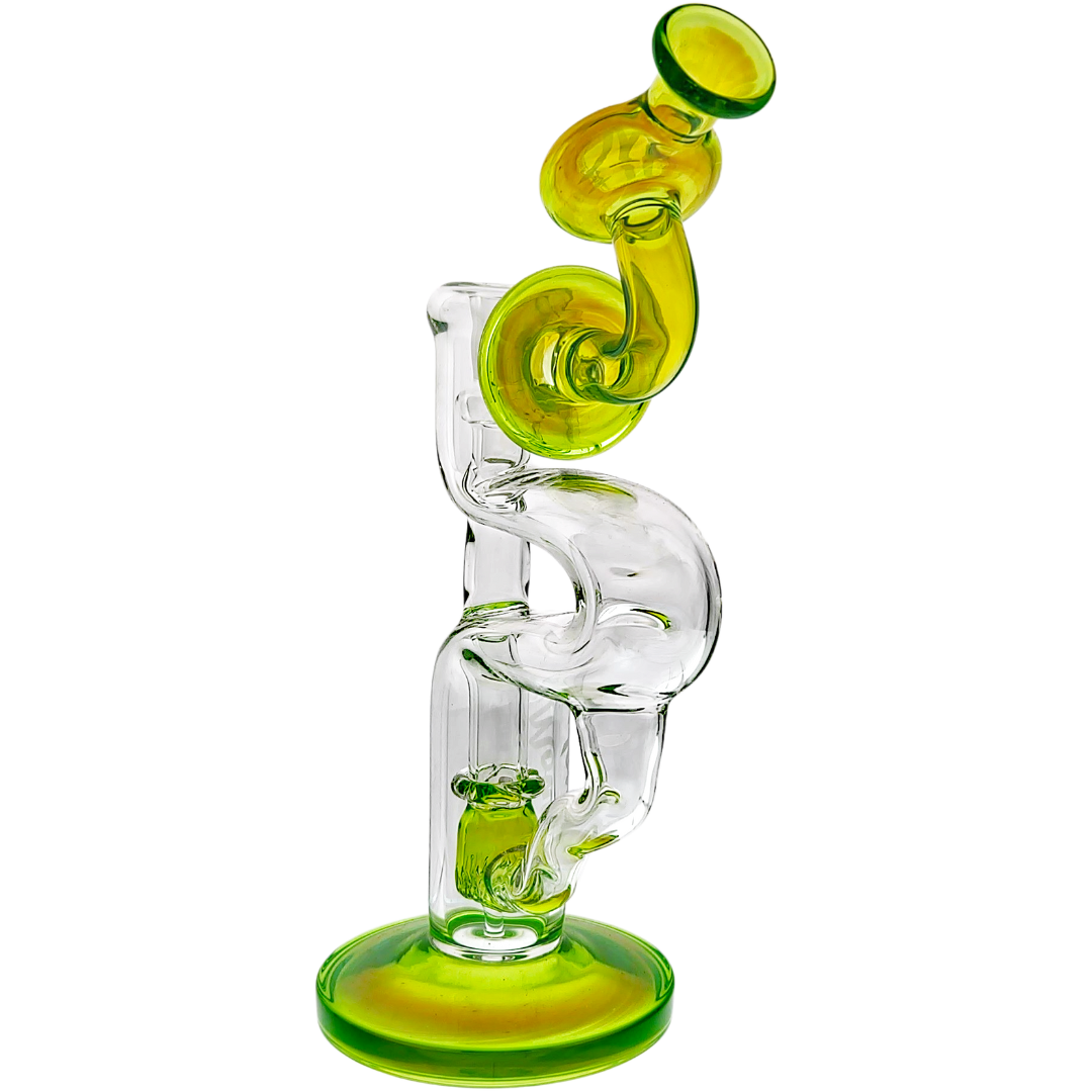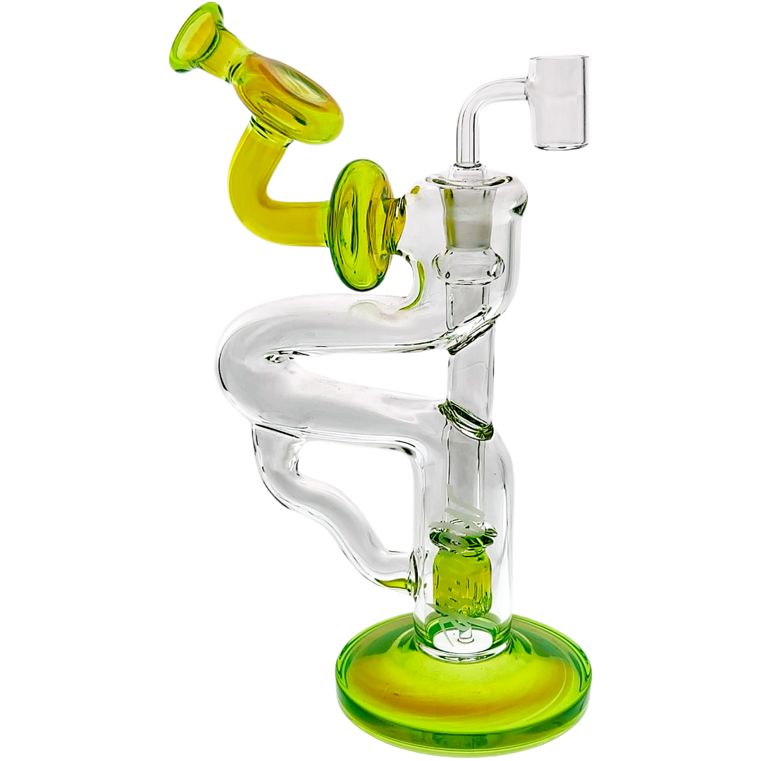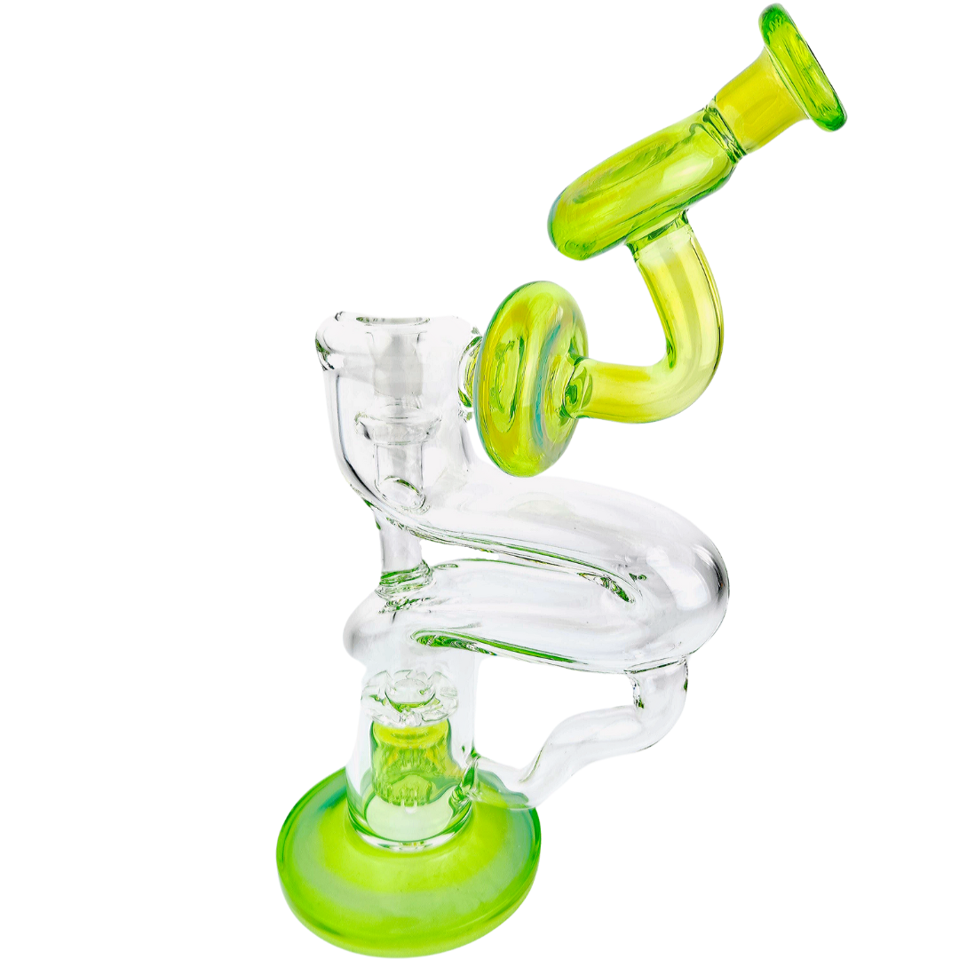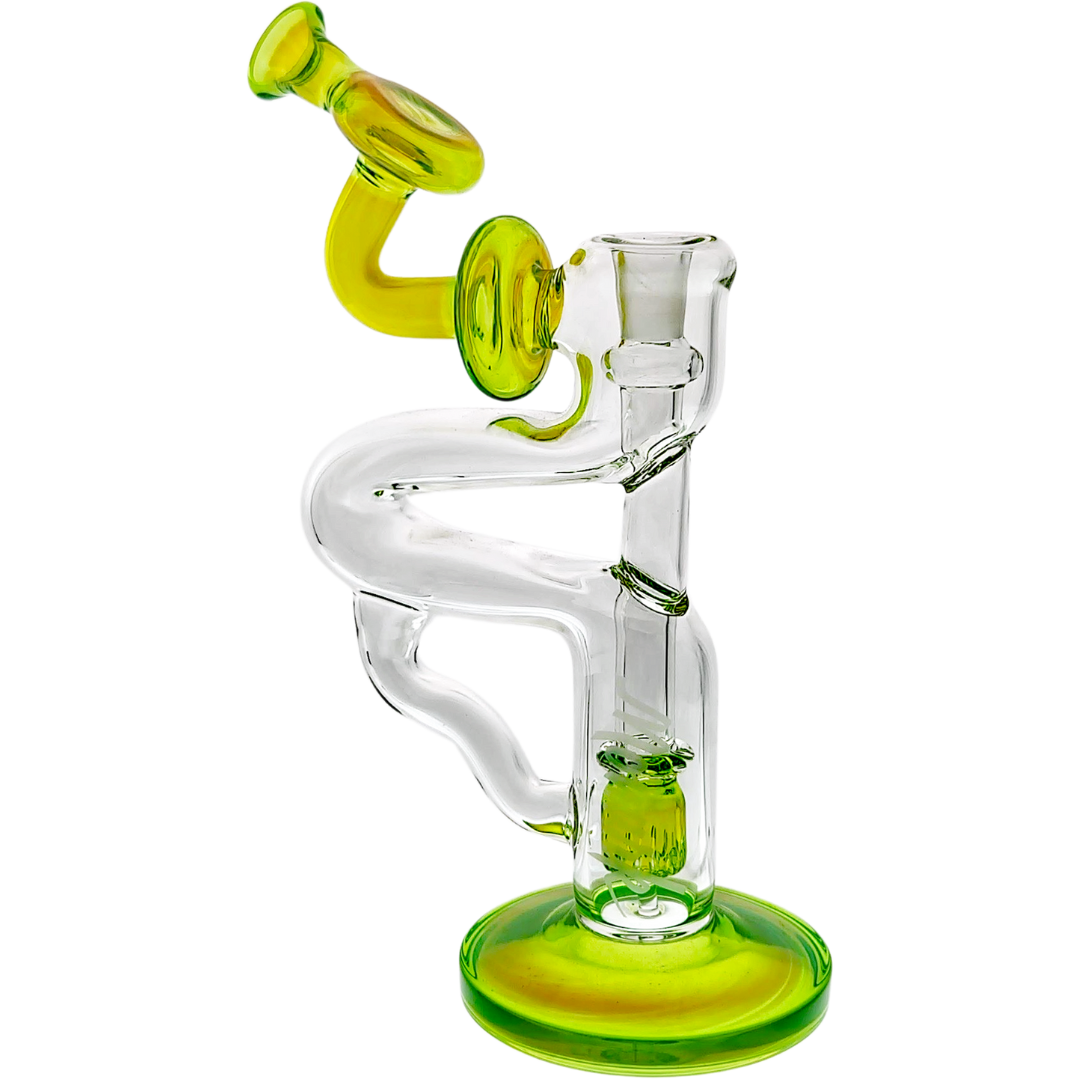The “Zongcycler” name is literal: it combines that classic Zong-style bent neck and body with recycler plumbing. The bends help add a bit of natural cooling and keep your face farther from the banger, while the recycler section keeps water circulating for smoother pulls.