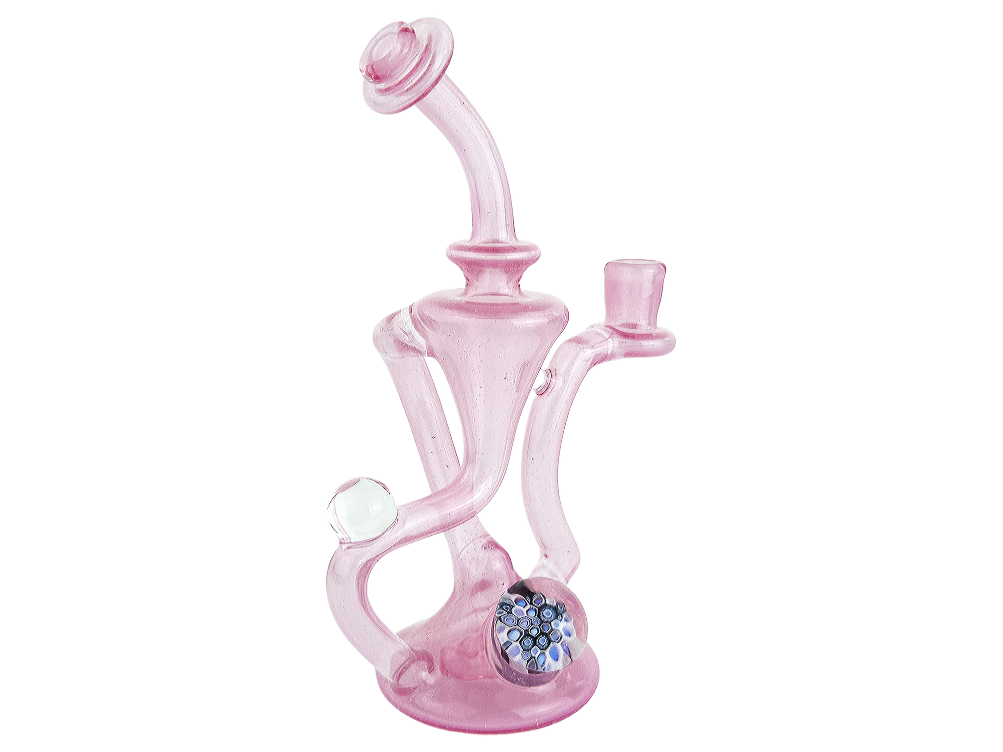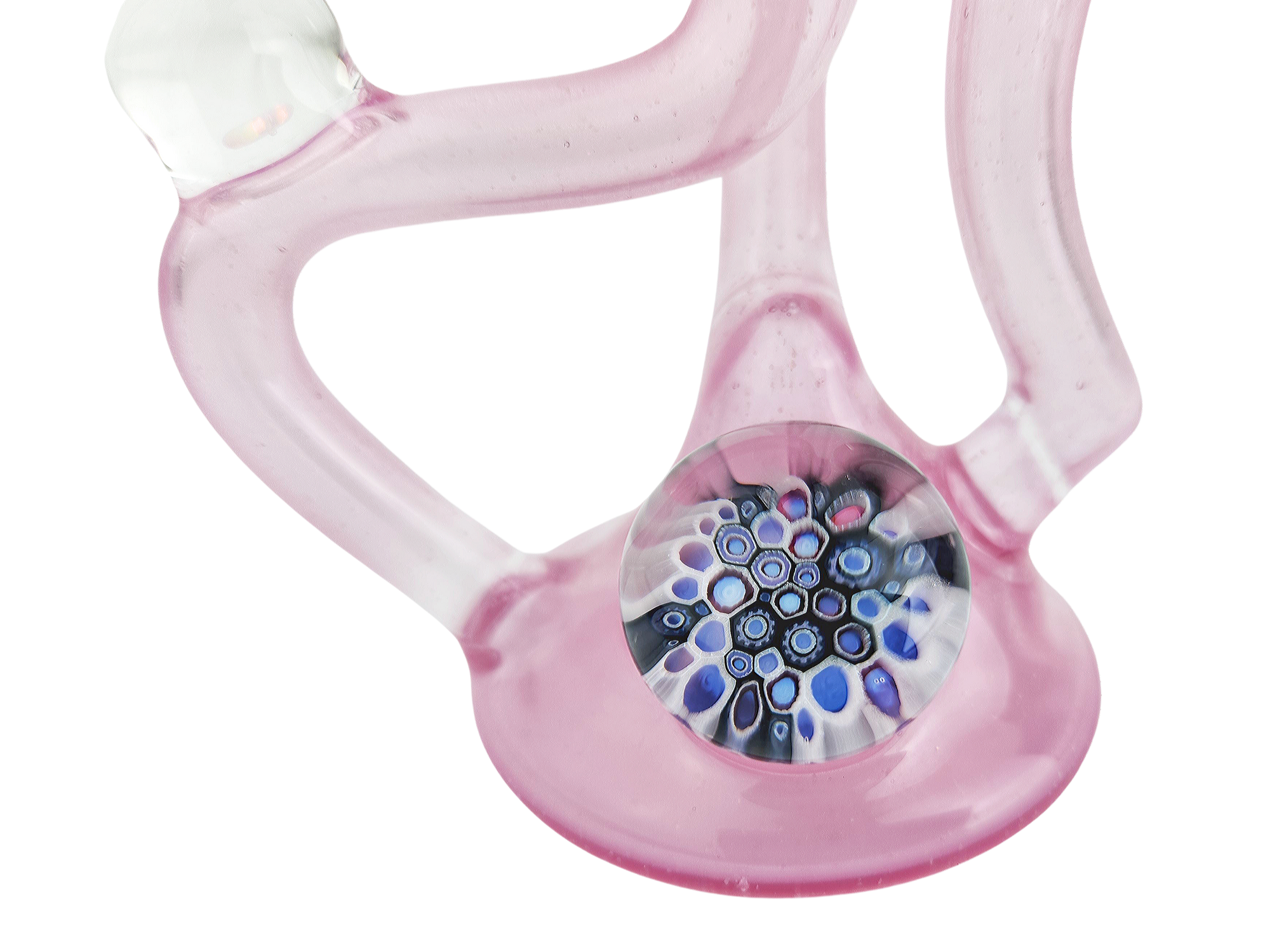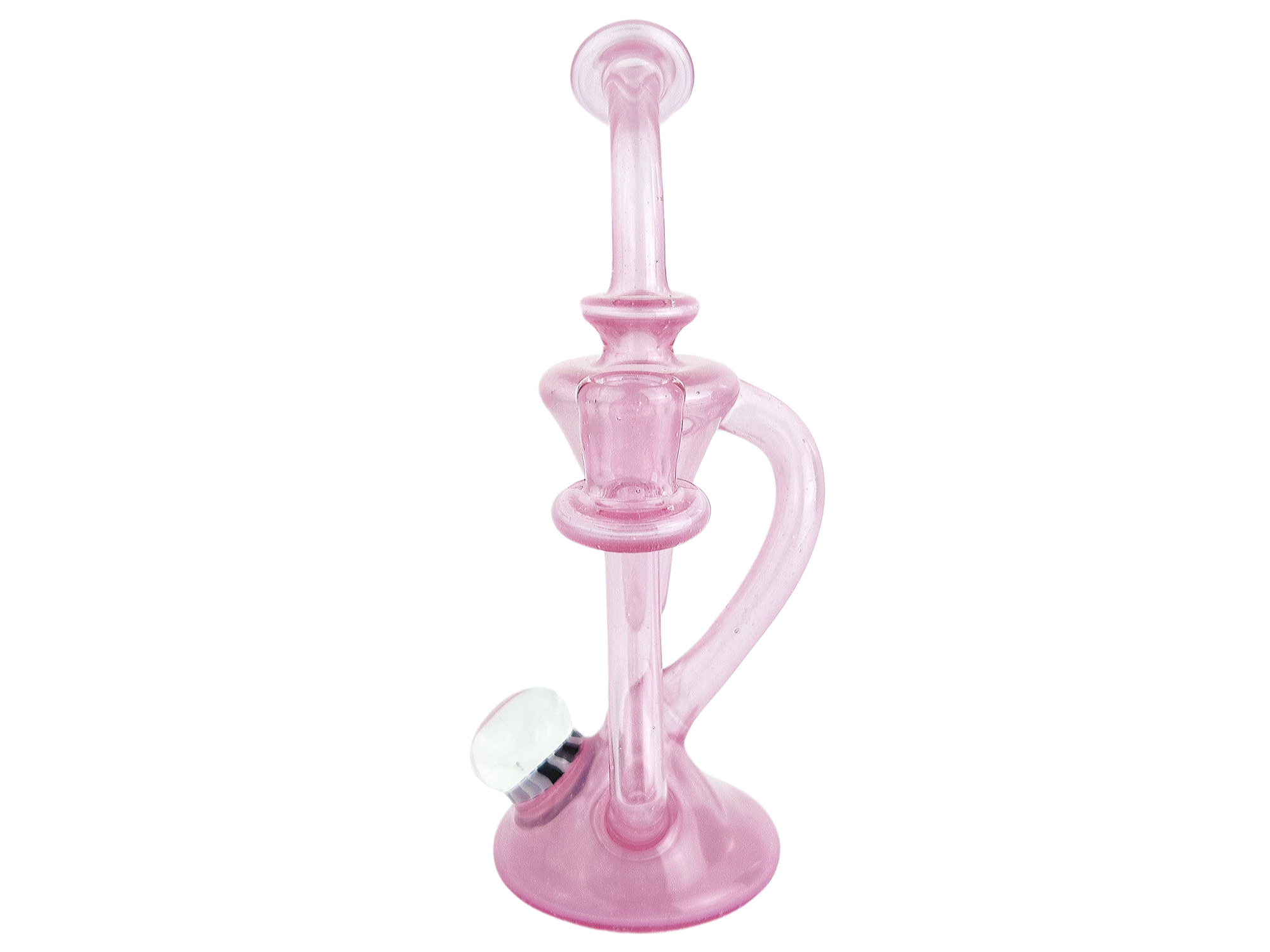 The 6" CREEP Glass Recycler with Millie Cab is a high-end American-made dab rig built for serious concentrate fans who care as much about art as they do about function. At just 6 inches (152mm), it’s compact enough for a desktop daily driver, but loaded with detail—from the sculpted recycler design to the millie cab and opal accent. If you want a pink showpiece that rips smooth and looks wild on the shelf, this is it.