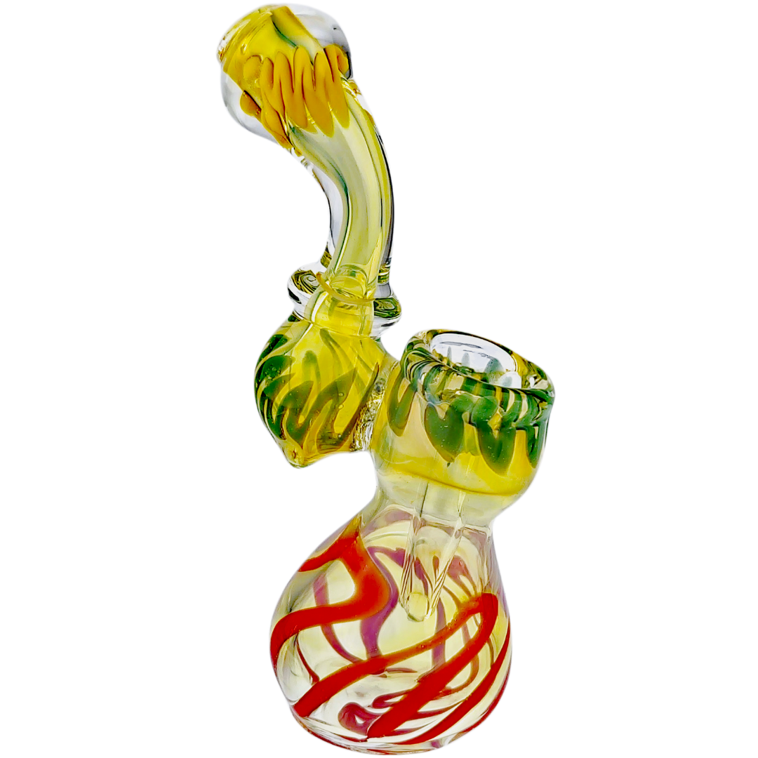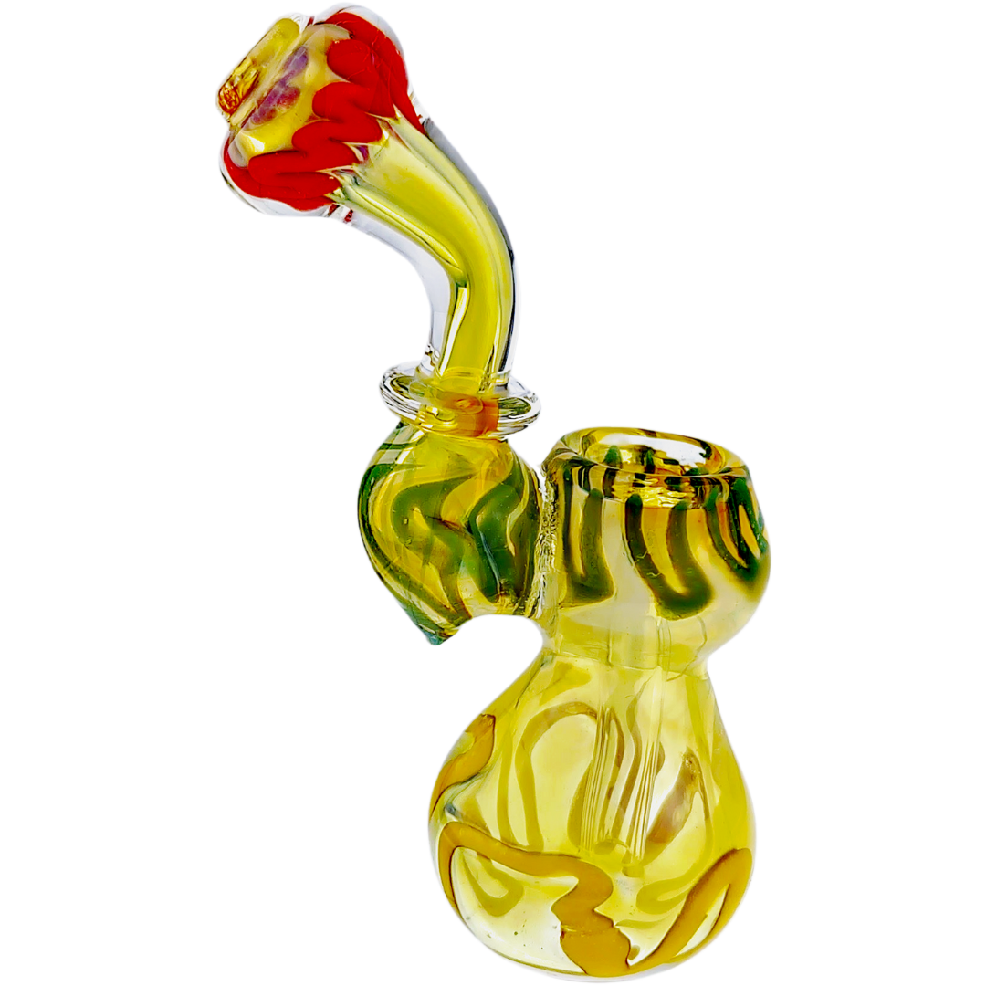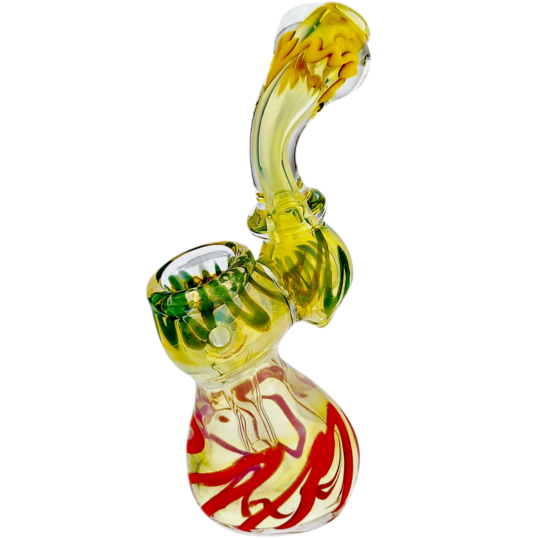 The fume Rasta style mixes fumed glass with bold Rasta colors, so you get both depth and brightness in the piece. Over time, as you use and clean it, you may notice subtle changes in how the colors show through, giving the bubbler more personality the longer it’s in your lineup. If you like your gear to look as good as it hits, this style definitely delivers.