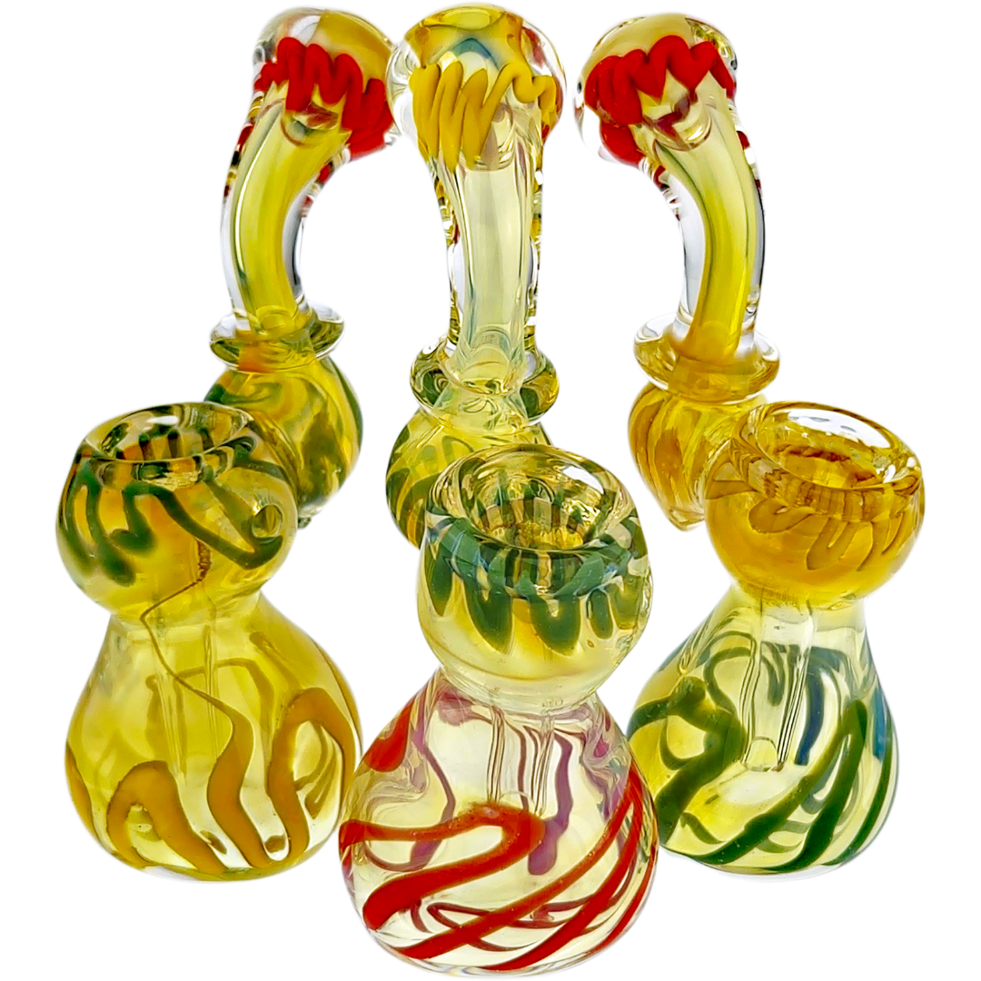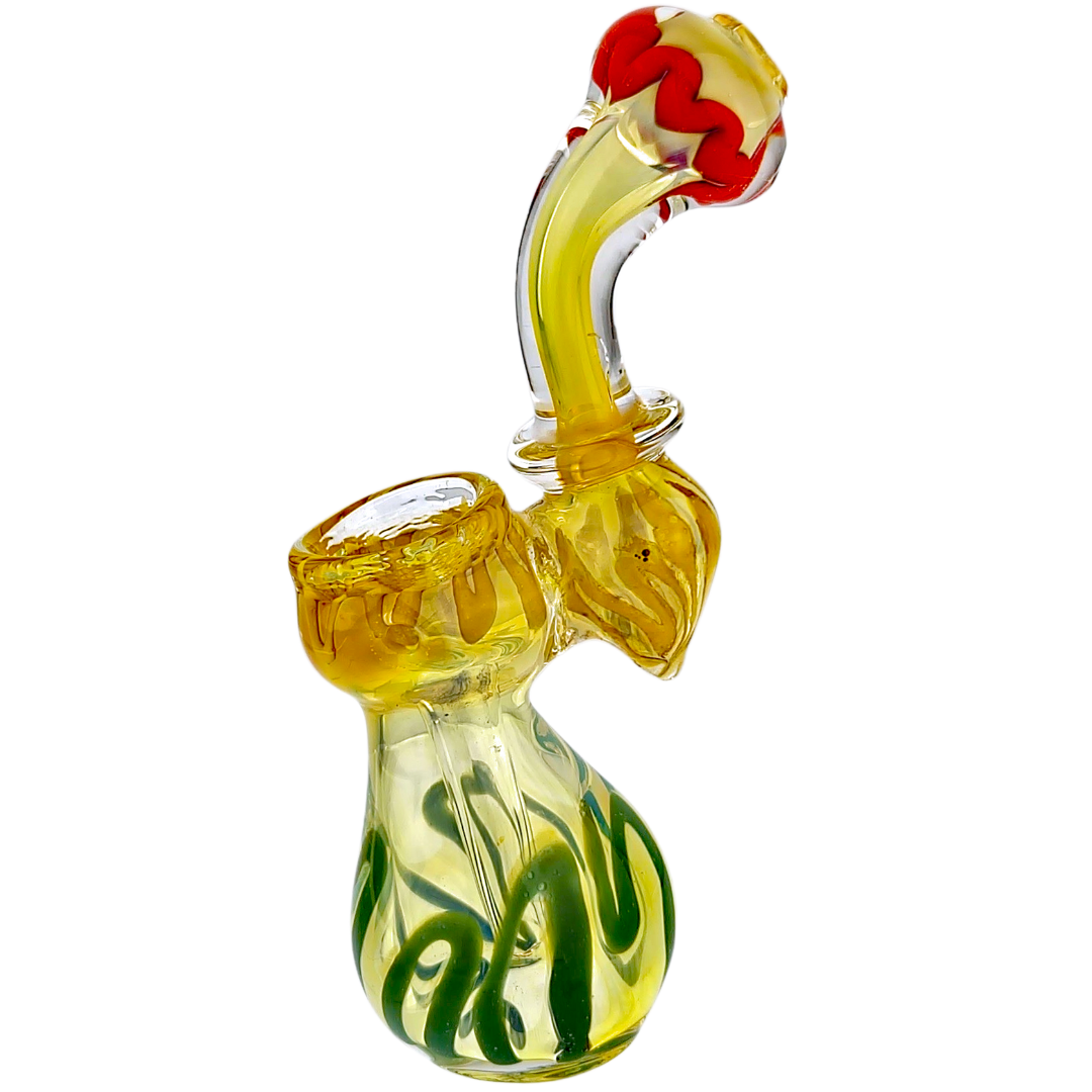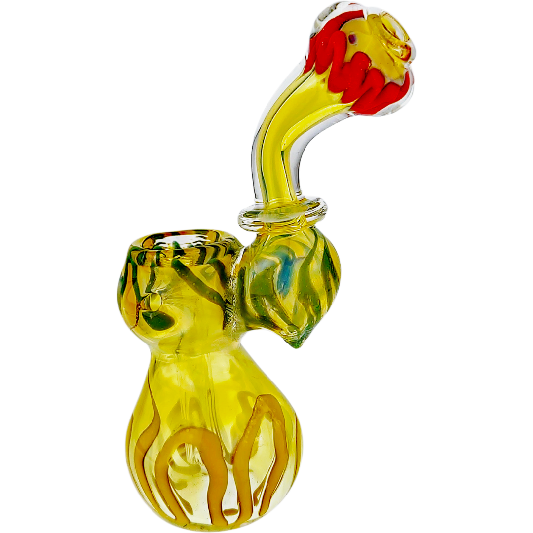 The fume Rasta style mixes fumed glass with bold Rasta colors, so you get both depth and brightness in the piece. Over time, as you use and clean it, you may notice subtle changes in how the colors show through, giving the bubbler more personality the longer it’s in your lineup. If you like your gear to look as good as it hits, this style definitely delivers.