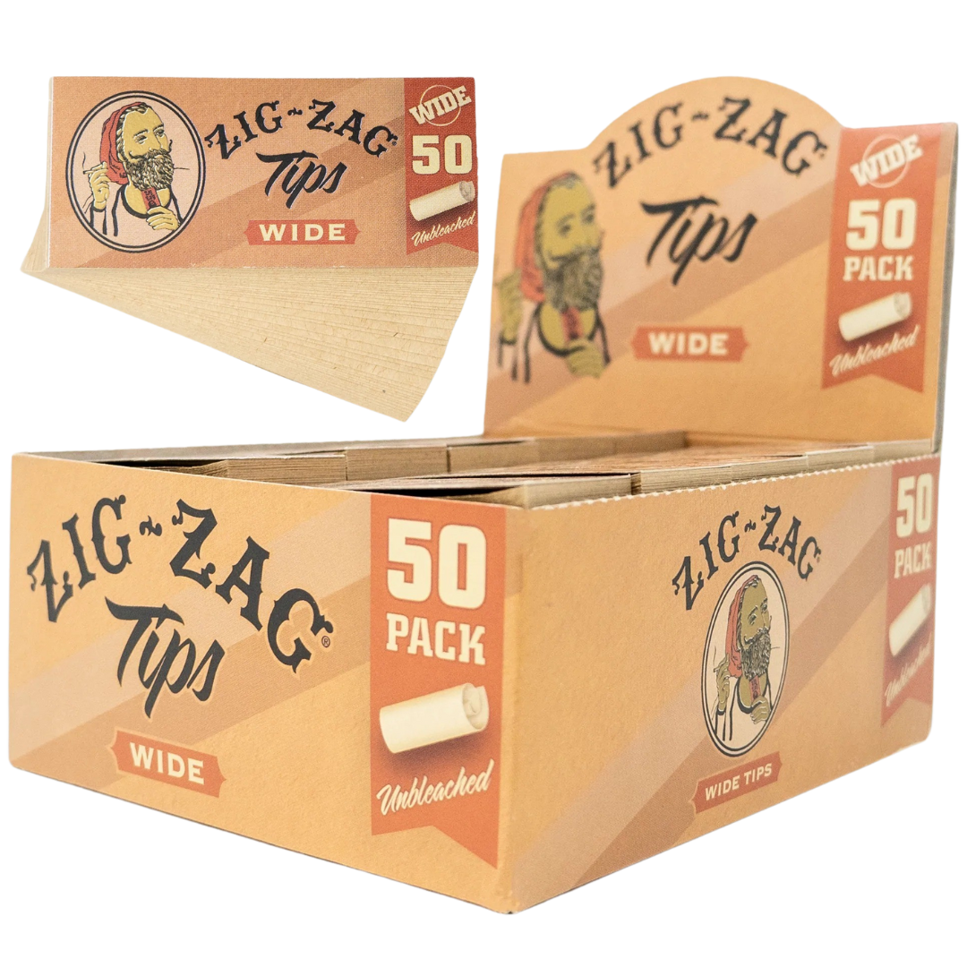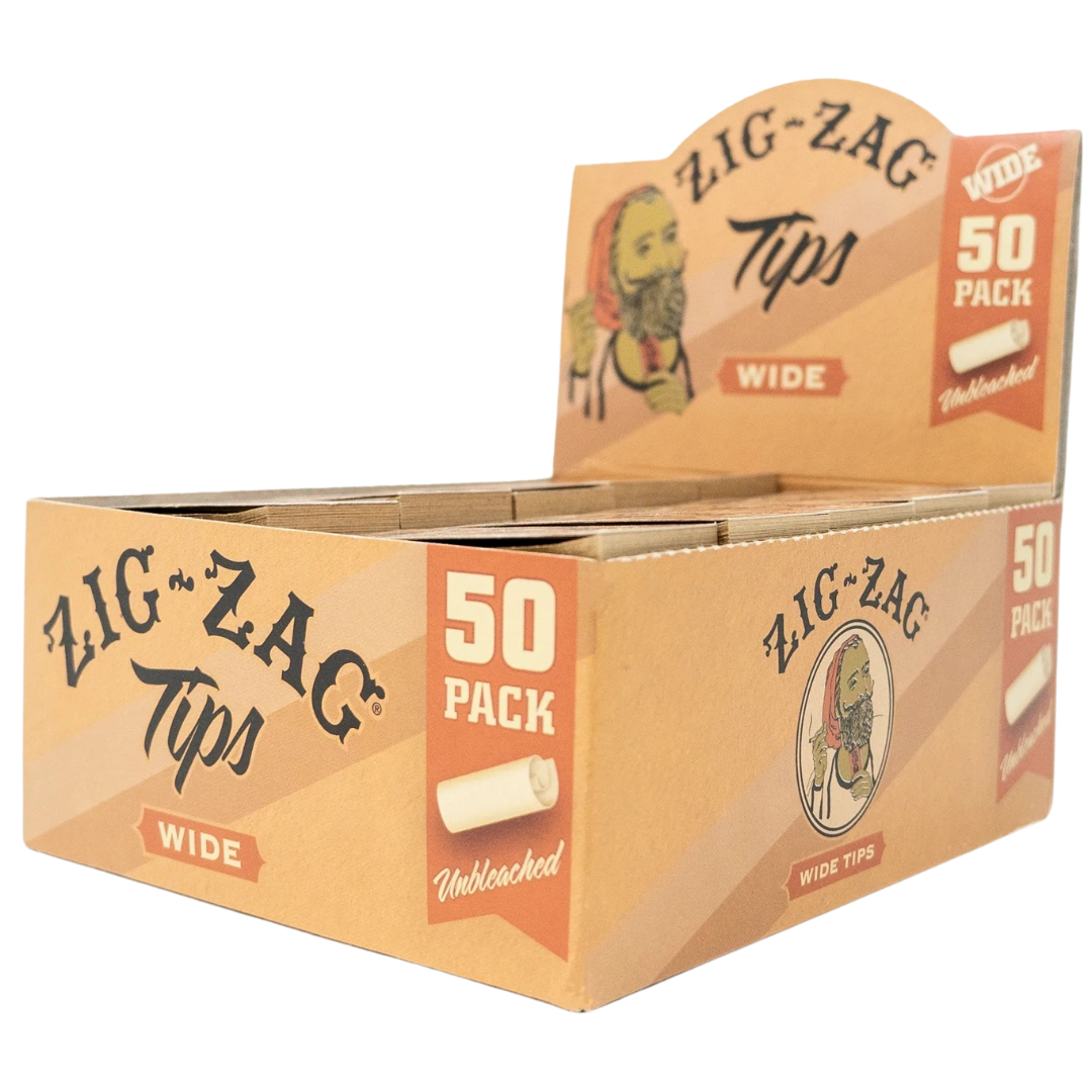 The Zig Zag Unbleached Wide Rolling Tips 50 Pack Carton is a bulk pack of biodegradable filter tips made for rollers who want clean, natural materials and enough stock to last. Each carton contains 50 booklets with 50 tips per booklet—2,500 tips total—so you're set whether you're rolling for yourself or sharing with friends. The unbleached paper and perforated lines make it easy to roll consistent, comfortable filters every time.