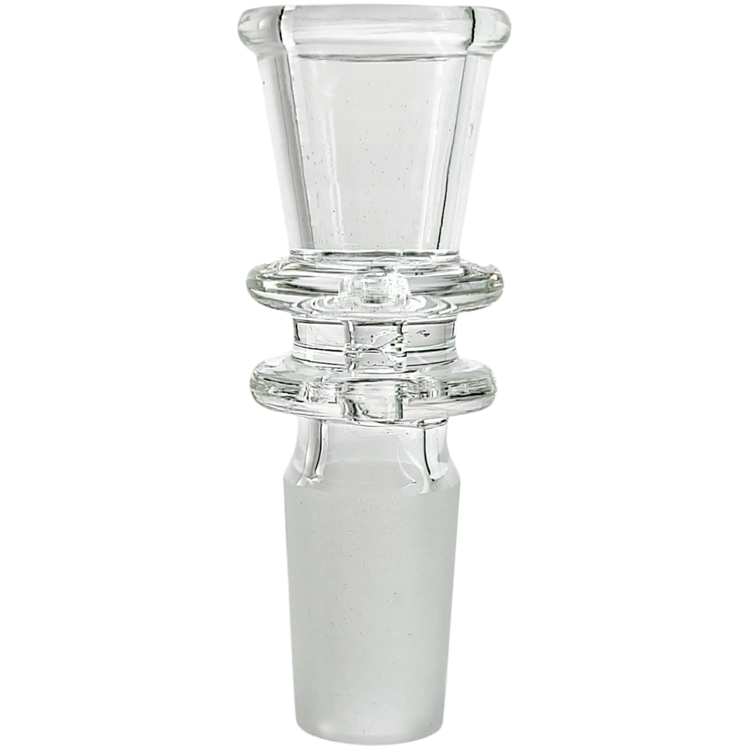 This is a 2-inch 14mm clear glass flower bowl with a double maria joint and martini funnel shape — built for smokers who want a solid everyday bowl that doesn't cost much but still does the job. The funnel design gives you a wider loading area so you're not fumbling with sticky fingers, and the double maria (those reinforced rings around the joint) means this thing can handle regular removal and cleaning without snapping at the joint. At this price point, it's a grab-a-few-extras kind of piece.