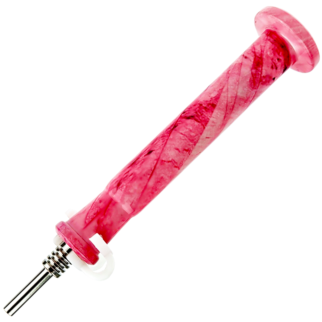 Nectar straws flip the traditional dab rig concept — instead of dropping concentrate into a heated banger, you bring the heated tip directly to your concentrate. Hold the straw at an angle, heat the titanium tip with a torch until it's glowing, let it cool for a few seconds to avoid scorching your material, then touch the tip to your concentrate while inhaling through the mouthpiece end.