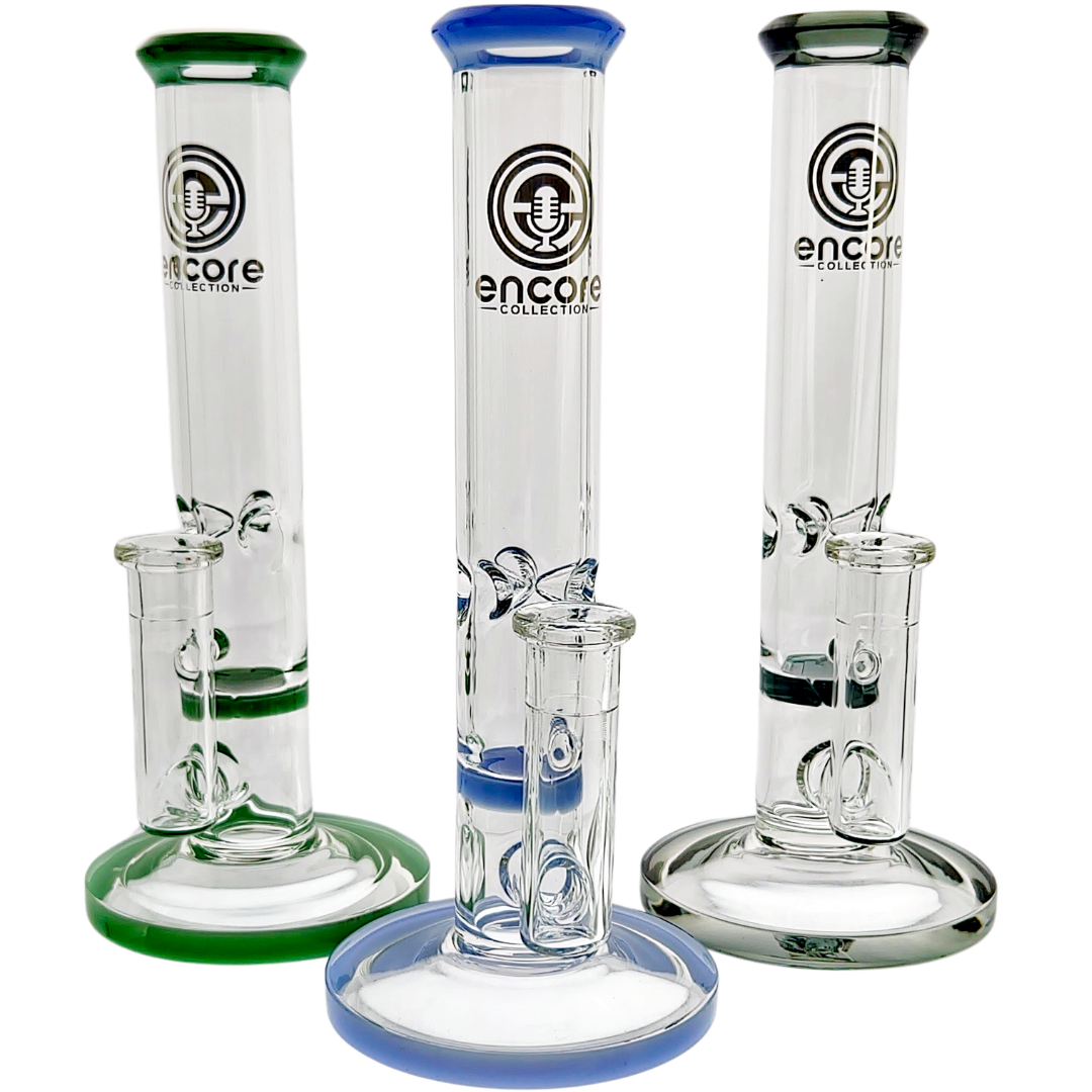 The 9" Encore Color Accent Honeycomb Straight is a compact glass bong built for smokers who want real diffusion in a daily driver without taking over the whole coffee table. At just 9 inches (229mm) tall with a honeycomb perc, it delivers smooth, filtered pulls while still feeling easy to handle and pass. Color accents on the mouthpiece and base give it personality without getting loud or gimmicky.