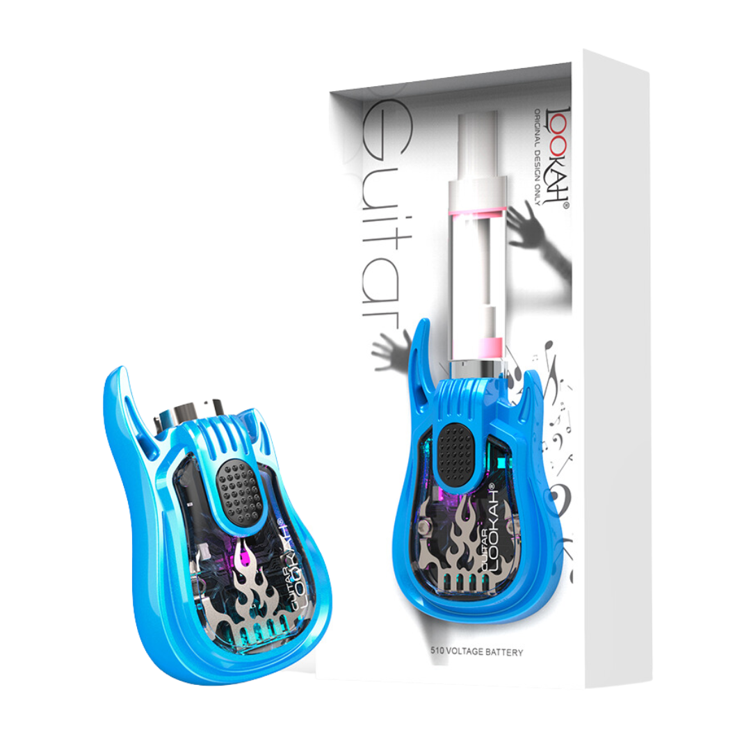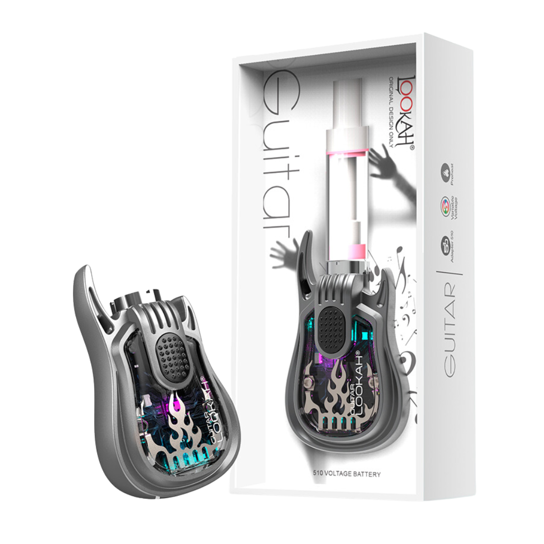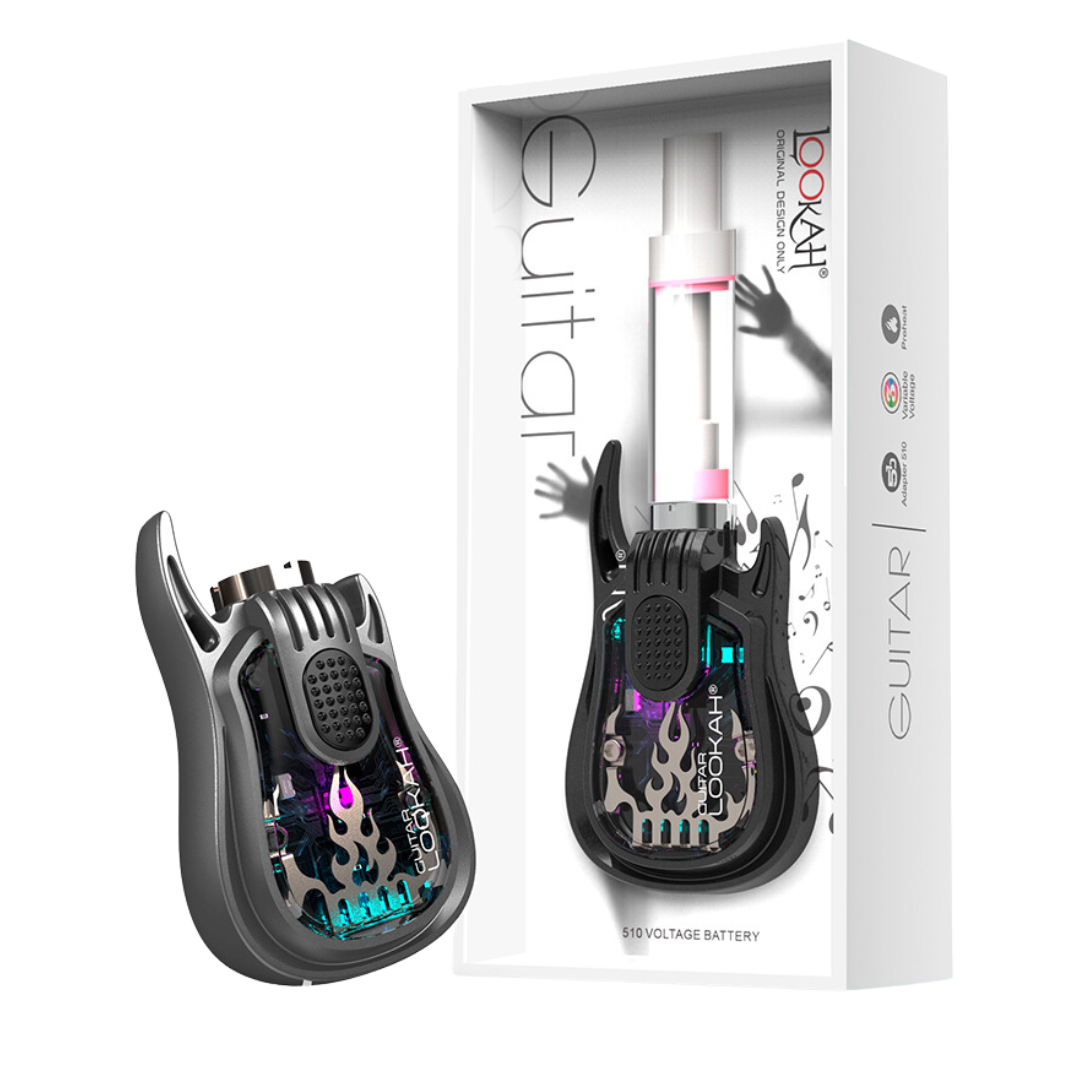 The Lookah Guitar is a 510-thread vape battery shaped like a miniature electric guitar, built for cart users who want something more fun than the usual stick batteries. With 350mAh capacity and three voltage presets, it handles most standard oil cartridges while giving you a conversation starter that clips right to your lanyard.